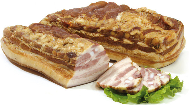 Грудинка Естъ Большой кусок копчено-вареная хорошо сочетается с разнообразными гарнирами, овощами и зеленью. Также его можно подать на стол в составе мясной тарелки. Нежный и сытный деликатес изготовлен из отборного мяса с добавлением пряных специй. Производится путем длительной обработки. Продукт демонстрирует приятный цвет и на срезе заметны небольшие жировые прожилки. Он помогает быстро утолить чувство голода и восполнить энергозатраты организма. С его помощью можно приготовить вкусные и оригинальные бутерброды, закуски.