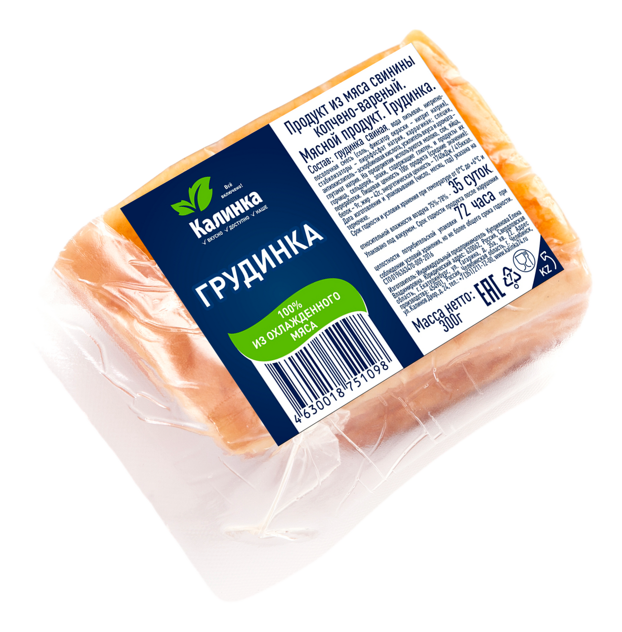 Грудинка Калинка Крылатская варено-копченая, 300г изумительный деликатес из свинины с ароматом пряностей и пикантными нотками копчения на буковой щепе. Продукт имеет сбалансированный вкус и легкий аромат. Он отлично дополнит сэндвич или салат, а также станет украшением праздничного стола.