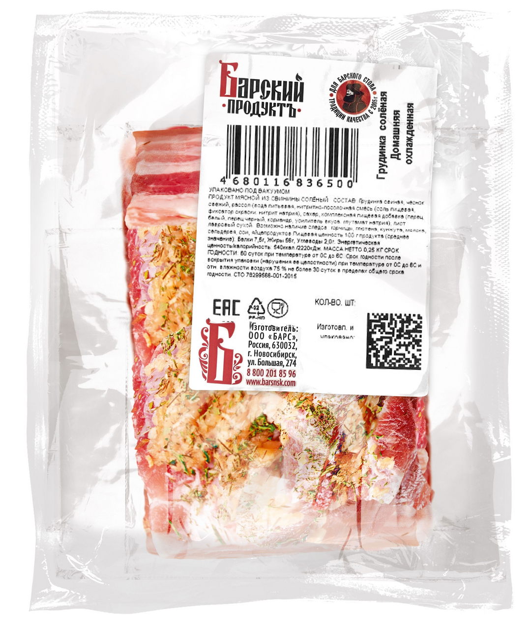 Грудинка свиная Барский продукт Домашняя соленая, 250г