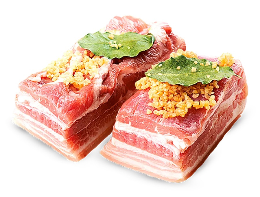 Готовится из отборного сырья и ароматных пряностей. Продукт имеет сбалансированную соленость и легкий аромат копчения. Он отлично дополнит сэндвич или салат, а также станет украшением праздничного стола. Грудинка идеально сочетается с самыми разными гарнирами, соусами и хлебом.
