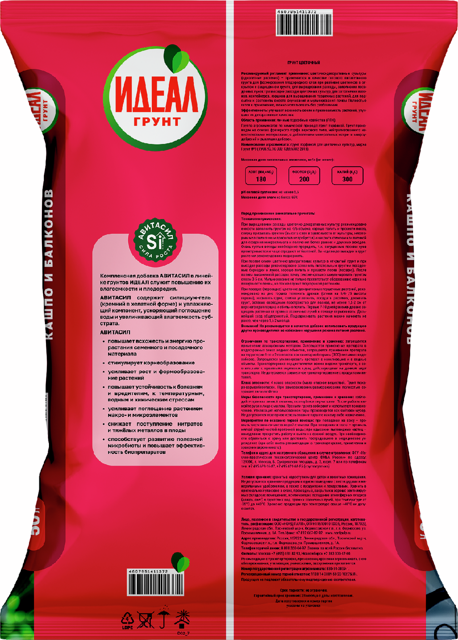 Грунт цветочный Идеал 50л