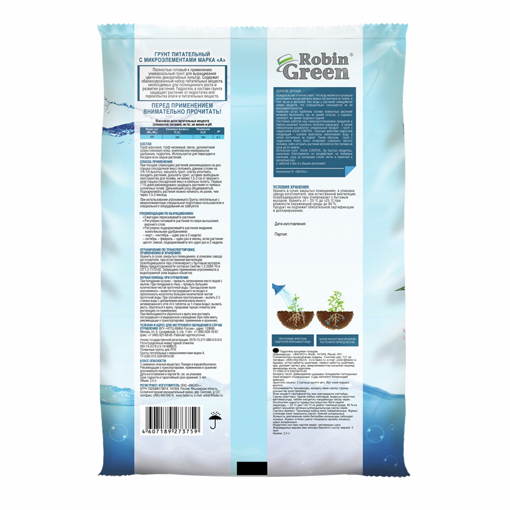 Грунт универсальный Фаско Робин Грин с гидрогелем, 2.5л