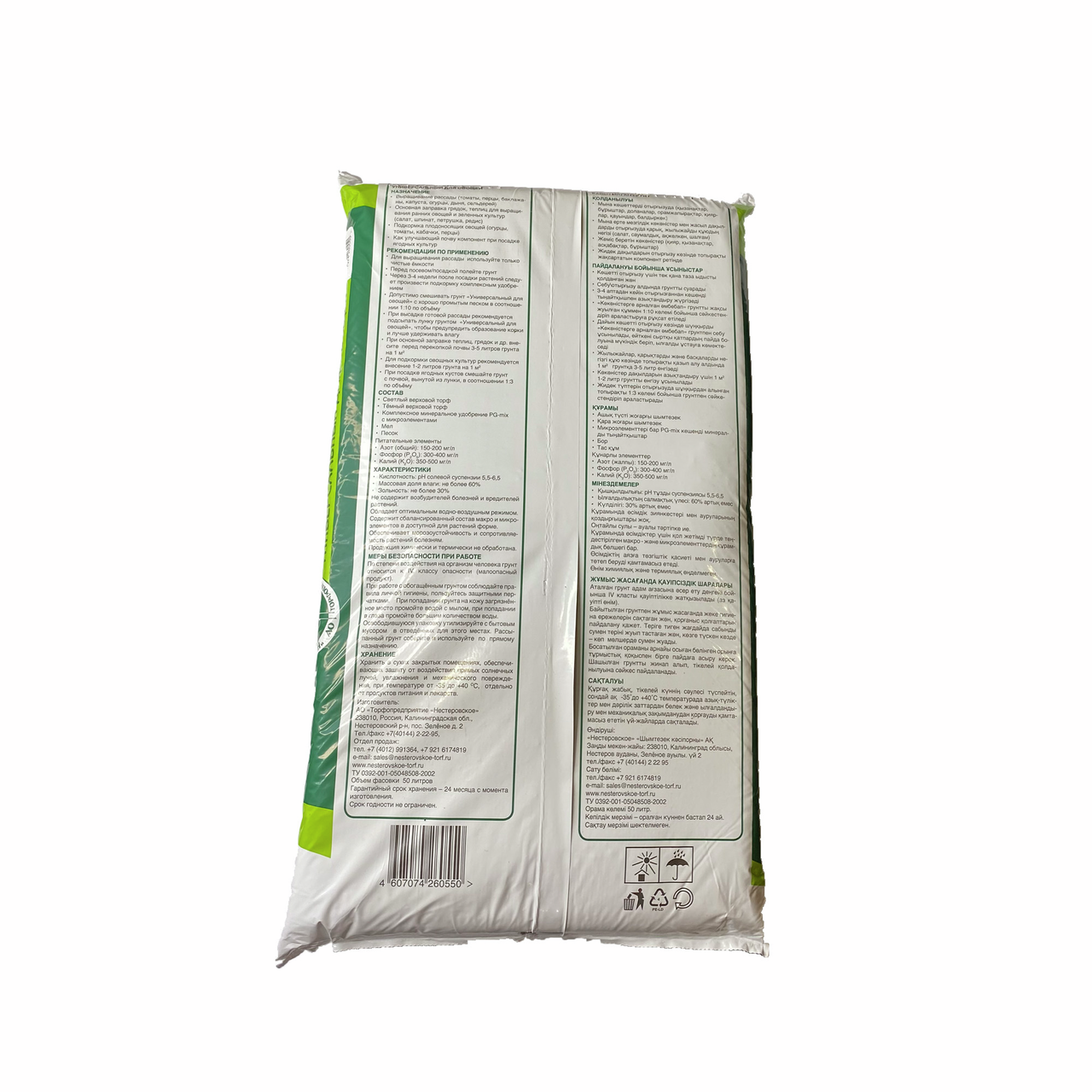 Грунт предназначен для выращивания овощных культур защищенного грунта, для подкормки плодоносящих овощей, для культивирования салата и зелени в условиях теплиц, а также для выращивания рассады для открытого грунта томатов, баклажанов, сладкого перца, огурцов, кабачков и других овощных культур. Состав Верховой сфагновый торф, мел, комплексное минеральное удобрение PG-MIX (12+14+24), суперфосфат, песок. Питательные вещества общий азот (N) 150-200 мг/л фосфор (P2O5) 300-400 мг/л калий (K2O) 350-500 мг/л Микроэлементы B, Cu, Fe, Mn, Mo, Zn Кислотность pH (KCI) 5,5-6,5.