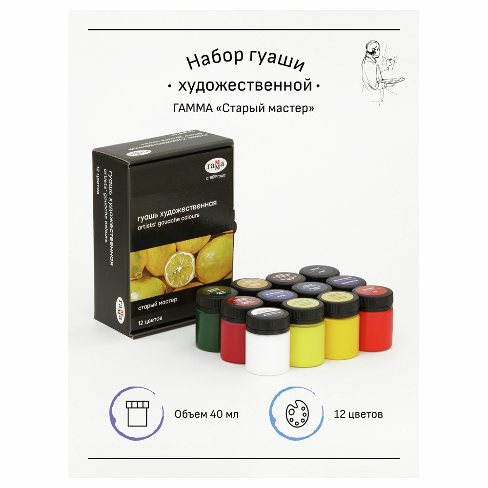 Гуашь художественная Гамма Старый мастер 12 цветов, 480г