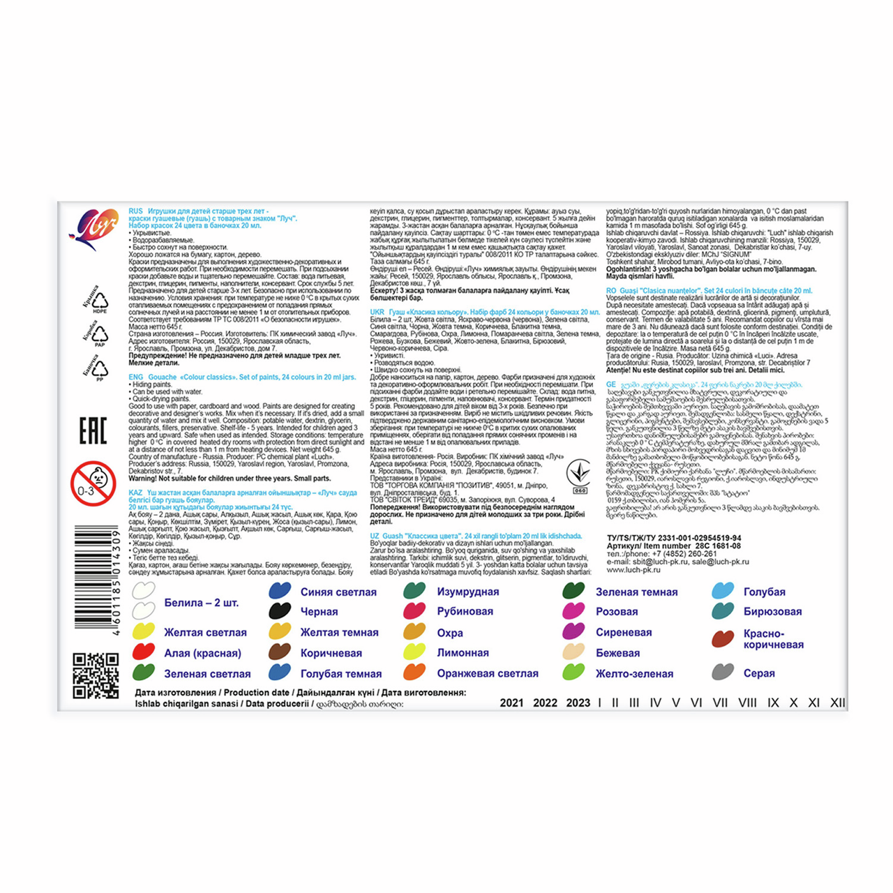 Гуашь Луч Классика 24 цвета х 20 мл, 645г