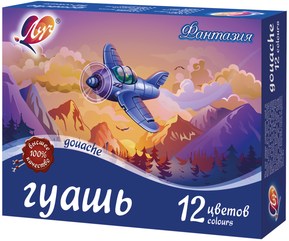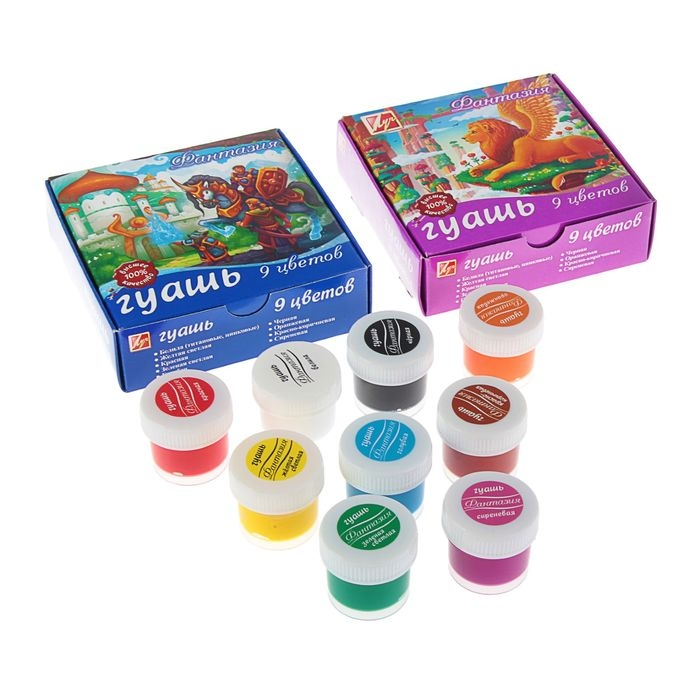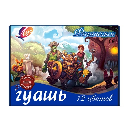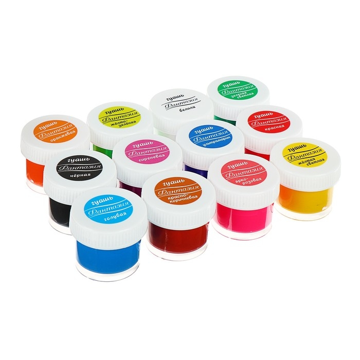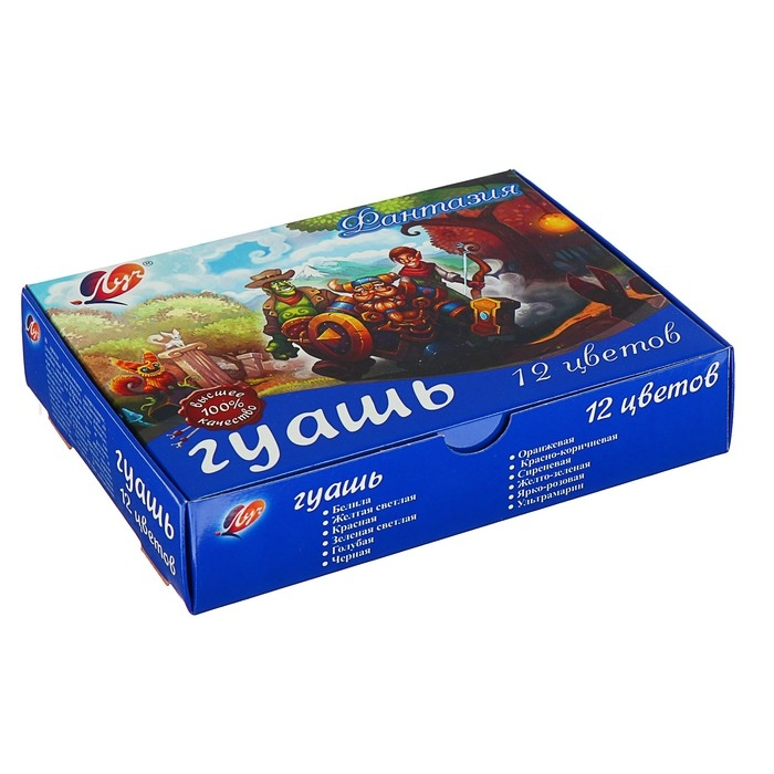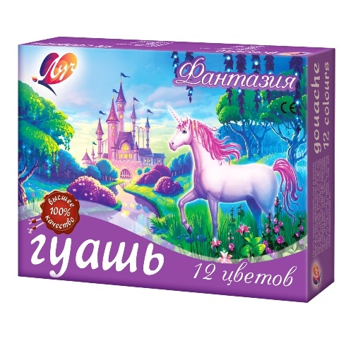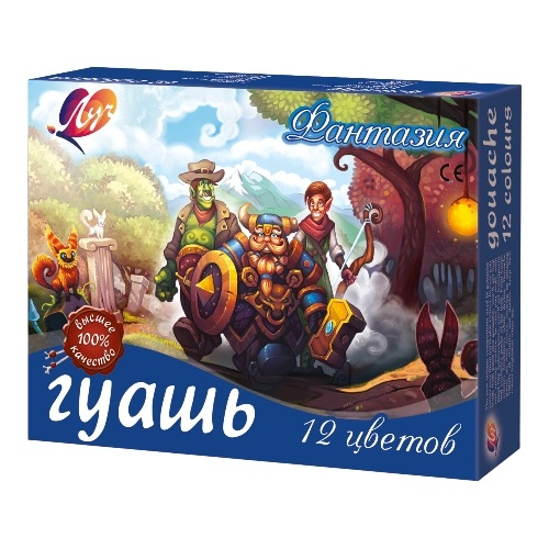 Гуашь ЛУЧ Фантазия 12 цветов, 15 мл – классический, известный каждому из нас с детства набор для творчества. Это оптимальный вариант для набора канцтоваров в садик, школу, изостудию для ребенка или для взрослого человека, увлекающегося живописью. В комплект входит 6 основных цветов, отличающихся яркостью и насыщенностью оттенков. Они прекрасно смешиваются между собой, образуя новые, необычные сочетания. Гуашь известна с 18 века, была изобретена во Франции и с тех пор остается незаменимой для проявления творческих способностей взрослых и детей. Основа состава этой краски – белила и пигмент, все вещества абсолютно безопасны для здоровья. Гуашь гораздо гуще по консистенции, нежели акварель, гладким, плотным слоем ложится на бумагу, оставляя четкие мазки. После высыхания приобретает матовую, бархатистую текстуру, не обсыпается и длительное время сохраняет насыщенность оттенков. Краска легко и без следа смывается с кожи обычной водой.