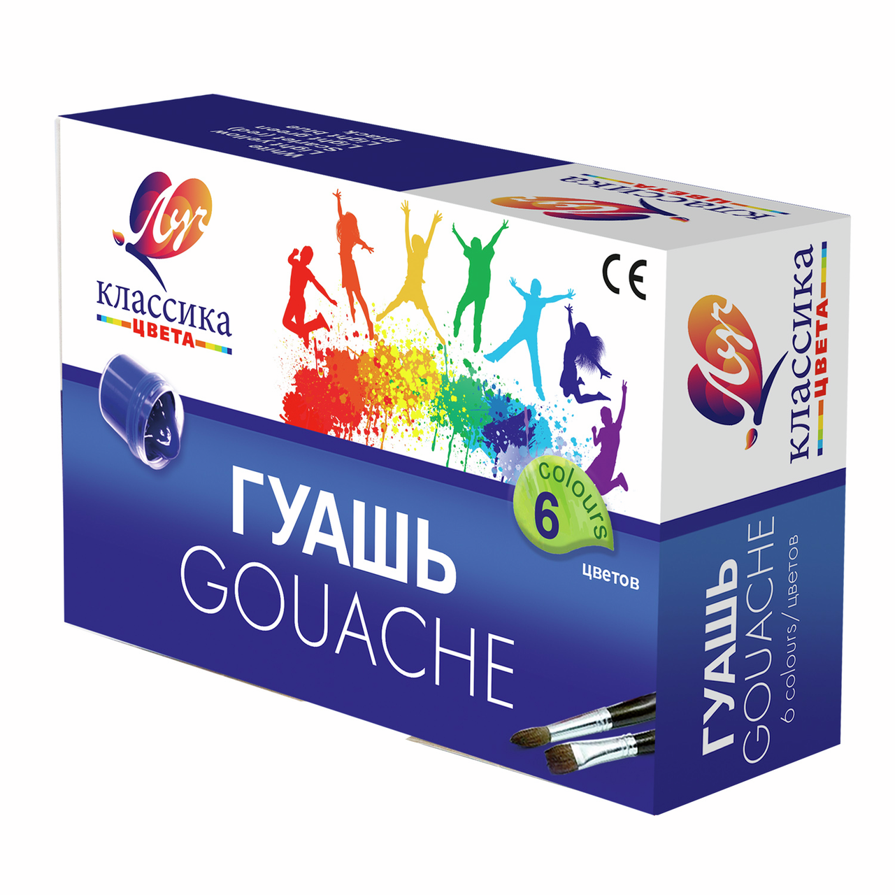 Гуашь Луч Классика 6 цвета, 20 мл – классический, известный каждому из нас с детства набор для творчества. Это оптимальный вариант для набора канцтоваров в садик, школу, изостудию для ребенка или для взрослого человека, увлекающегося живописью. В комплект входит 6 основных цветов, отличающихся яркостью и насыщенностью оттенков. Они прекрасно смешиваются между собой, образуя новые, необычные сочетания. Гуашь известна с 18 века, была изобретена во Франции и с тех пор остается незаменимой для проявления творческих способностей взрослых и детей. Основа состава этой краски – белила и пигмент, все вещества абсолютно безопасны для здоровья. Гуашь гораздо гуще по консистенции, нежели акварель, гладким, плотным слоем ложится на бумагу, оставляя четкие мазки. После высыхания приобретает матовую, бархатистую текстуру, не обсыпается и длительное время сохраняет насыщенность оттенков. Краска легко и без следа смывается с кожи обычной водой.