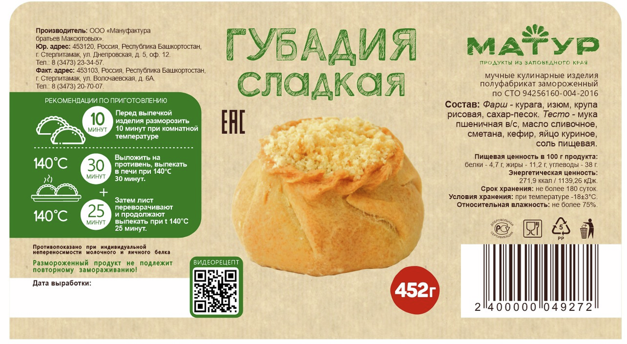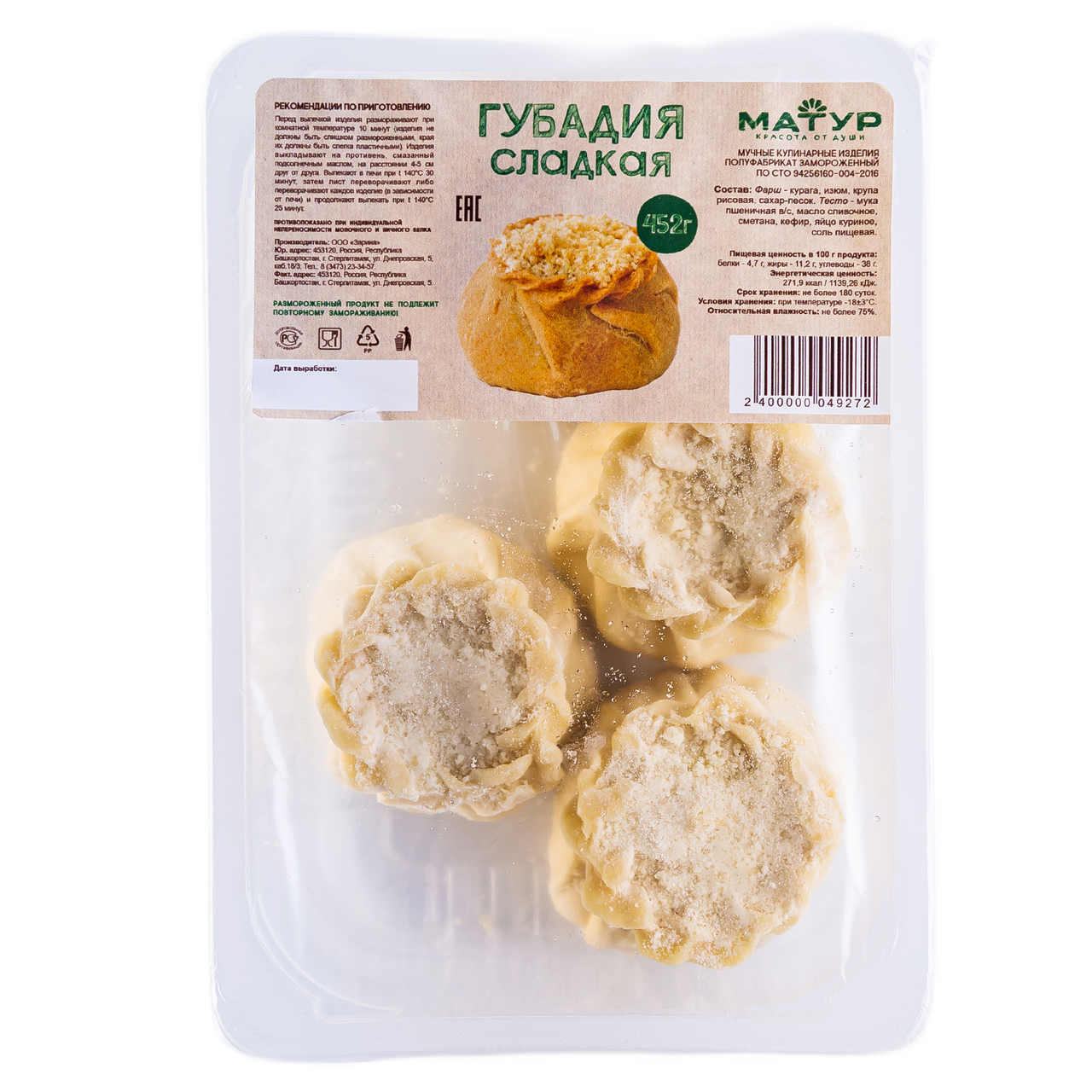 Губадия — это традиционное грузинское блюдо из тонкого слоеного теста с начинкой из риса, изюма и кураги. Способ приготовления: Перед выпечкой изделия размораживают при комнатной температуре 10 минут (изделия не должны быть слишком размороженными, края их должны быть слегка пластичными). Изделия выкладывают на противень, смазанный подсолнечным маслом, на расстоянии 4-5 см друг от друга. Выпекают в печи при температуре 140С 30 мин, затем лист переворачивают (либо переворачивают каждое изделие в зависимости от печи) и продолжают выпекать при температуре 140С 25 минут.