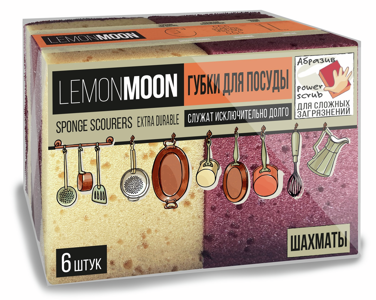 Губка для посуды Lemon Moon Retro Шахматы 10 x 7.1 x 3см, 6шт