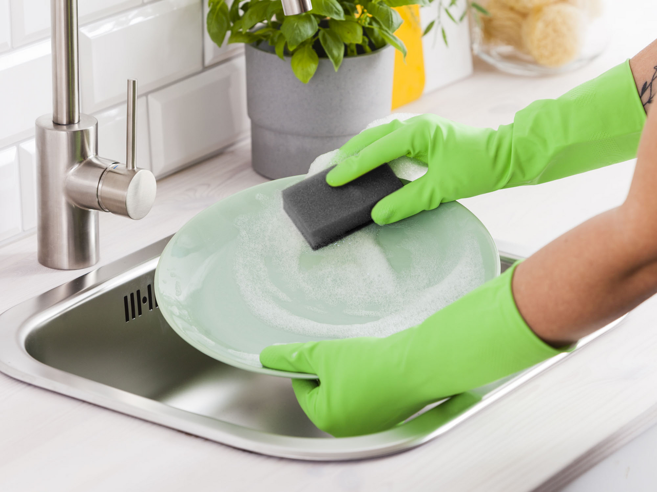 Набор из 10-ти классических двухслойных губок для мытья посуды. Два слоя: мягкий – хорошо справляется с загрязнениями и не царапает посуду; абразивный – позволяет удалять стойкую и присохшую грязь. Оптимальный размер - удобно держать в руке. Прочная и долговечная благодаря высокой плотности поролона и фибры. Трендовый графитовый цвет – стильное и универсальное решение, впишется в любой современный интерьер. Мягкий поролон отлично вспенивает моющее средство, позволяя вымыть большее количество посуды. Прочные и долговечные, благодаря высокой плотности поролона. Не повреждают поверхности, подходят для мытья любой посуды. Трендовый графитовый цвет – стильное и универсальное решение, впишется в любой современный интерьер. Большая упаковка закроет потребность в покупке губок на протяжении полугода: это экономично и экологично.