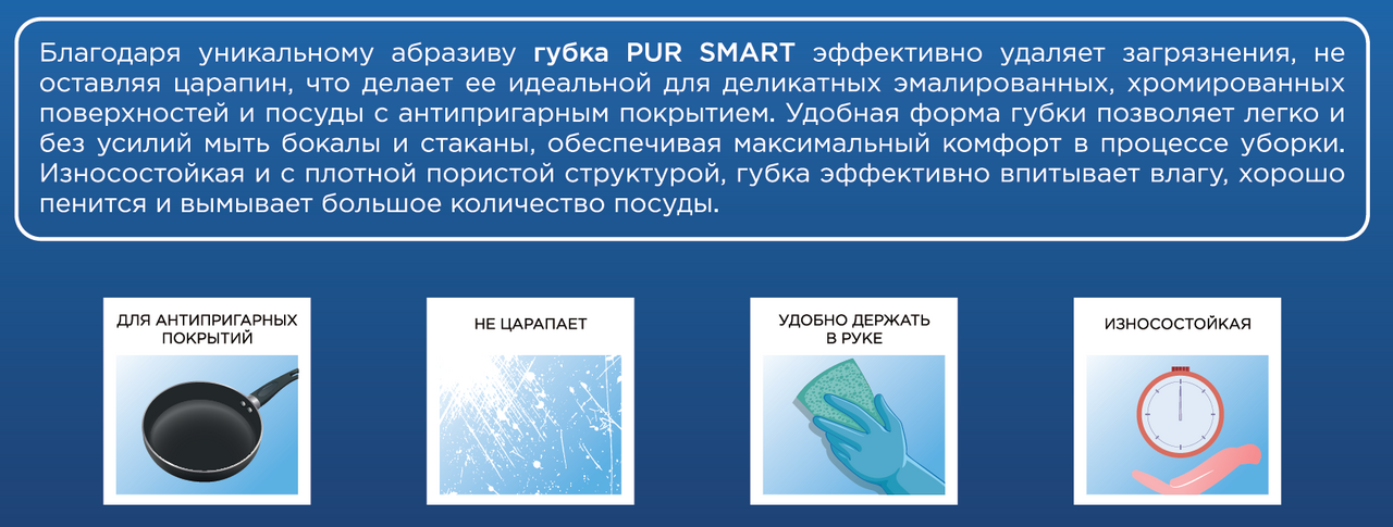 Губка для посуды Attribute Pur Smart 11 х 6см, 2шт