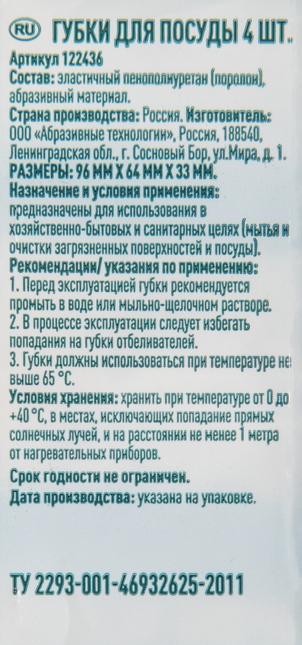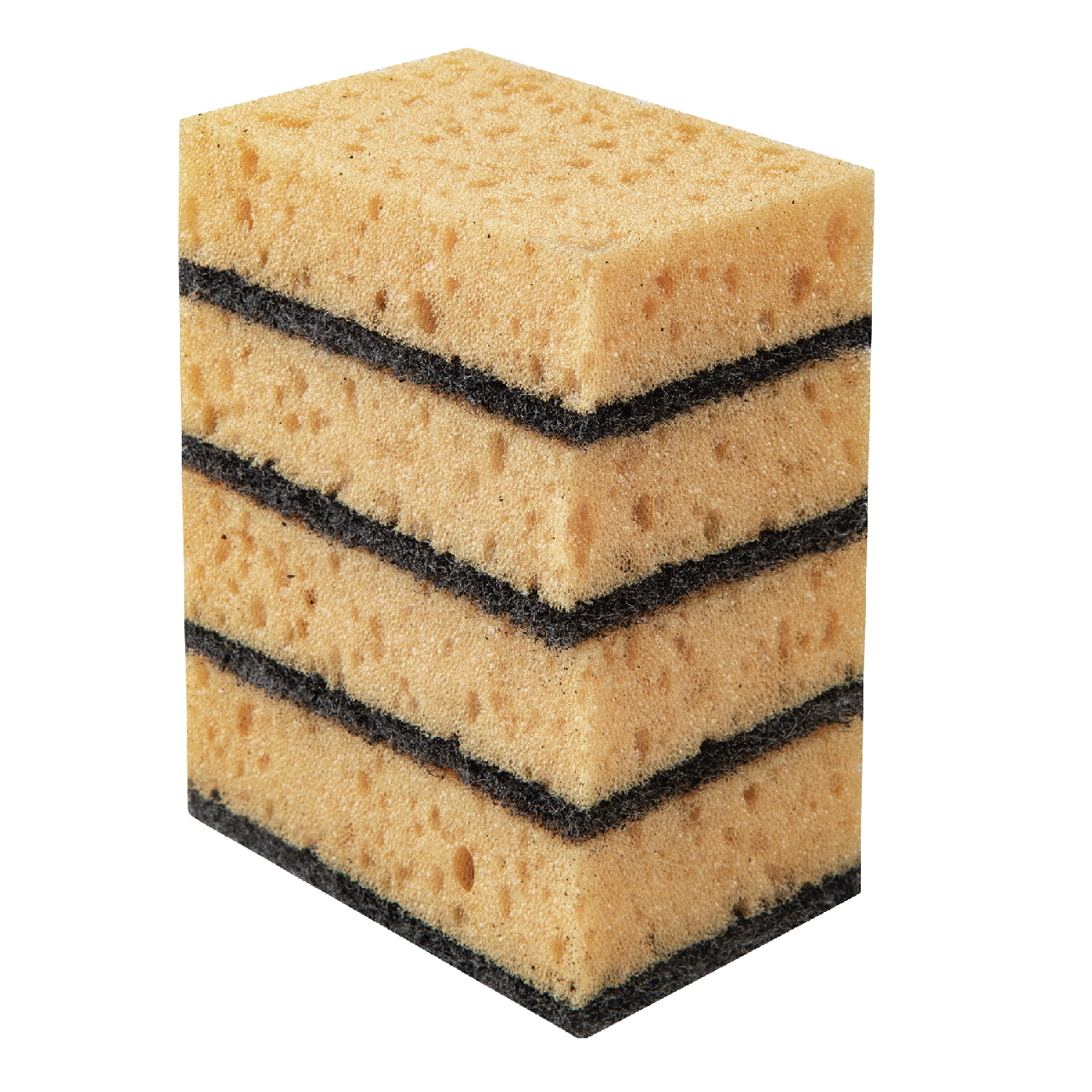 METRO PROFESSIONAL Губка для посуды, 96 x 64 x 33 мм, 4 шт. классической формы небольшого размера удобна и практична. Губка универсальная, подходит для мытья любой посуды (от тонкого фарфора до сковородок, казанов и противней). Она эффективно очищает любые загрязнения и не портит даже деликатные поверхности. Она помогает устранить остатки пищи, пригоревшую еду, жирные пятна. Ее можно использовать для очистки рабочих поверхностей и столов. Применять это изделие можно как в домашних условиях, так и на предприятиях общественного питания.