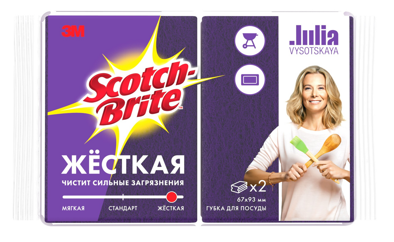 Губка Scotch-BriteExtreme прекрасно справляется с тяжелыми загрязнениями на грубых поверхностях, таких как: посуда, кастрюли, казаны, сковороды, противни, гриль. Не рекомендуется использовать для стекла, тефлона и других деликатных поверхностей. Уникальный абразивный слой EXTREME чистит в 4 раза эффективней обычного чистящего слоя.Удобны в использовании и обеспечивает защиту пальцев и ногтей от повреждений благодаря имеющейся выемке.Использовать только на кухне во избежание повреждений поверхностей.
