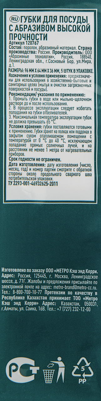 METRO PROFESSIONAL Губки для посуды 9.6 x 6.4 x 3.7см, 5шт