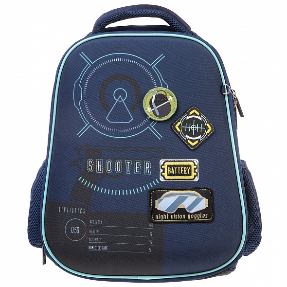 Серия Ergonomic light- эргономичный ранец с мягкими боковинами предназначен для детей младшего и среднего школьного возраста. Размер 38х29х15 см. Объем ранца 16,5л., вес - менее 850 гр. Выполнен из современного пористого EVA материала с покрытием из высококачественного полиэстера. Анатомическая вентилируемая спинка, лямки, регулируемые по высоте, уплотненная мягкая ручка и петля для подвешивания делают его удобным. Нагрудная стяжка позволит плотно закрепить рюкзак на спине школьника. Ранец содержит 2 независимых отделения на молнии: основное - с плавающей перегородкой, и дополнительное с карманом -сеткой и функциональным органайзером , включающим в себя два кармана на молнии для мелочей и мобильного телефона. Для удобства на задней спинке предусмотрен потайной карман на молнии для ценных вещей. На боковинах - удобные вместительные карманы. Дно ранца выполнено из ПВХ и дополнительно оснащено пластиковыми ножками. Светоотражающие элементы на лямках, передней и боковой частях ранца.