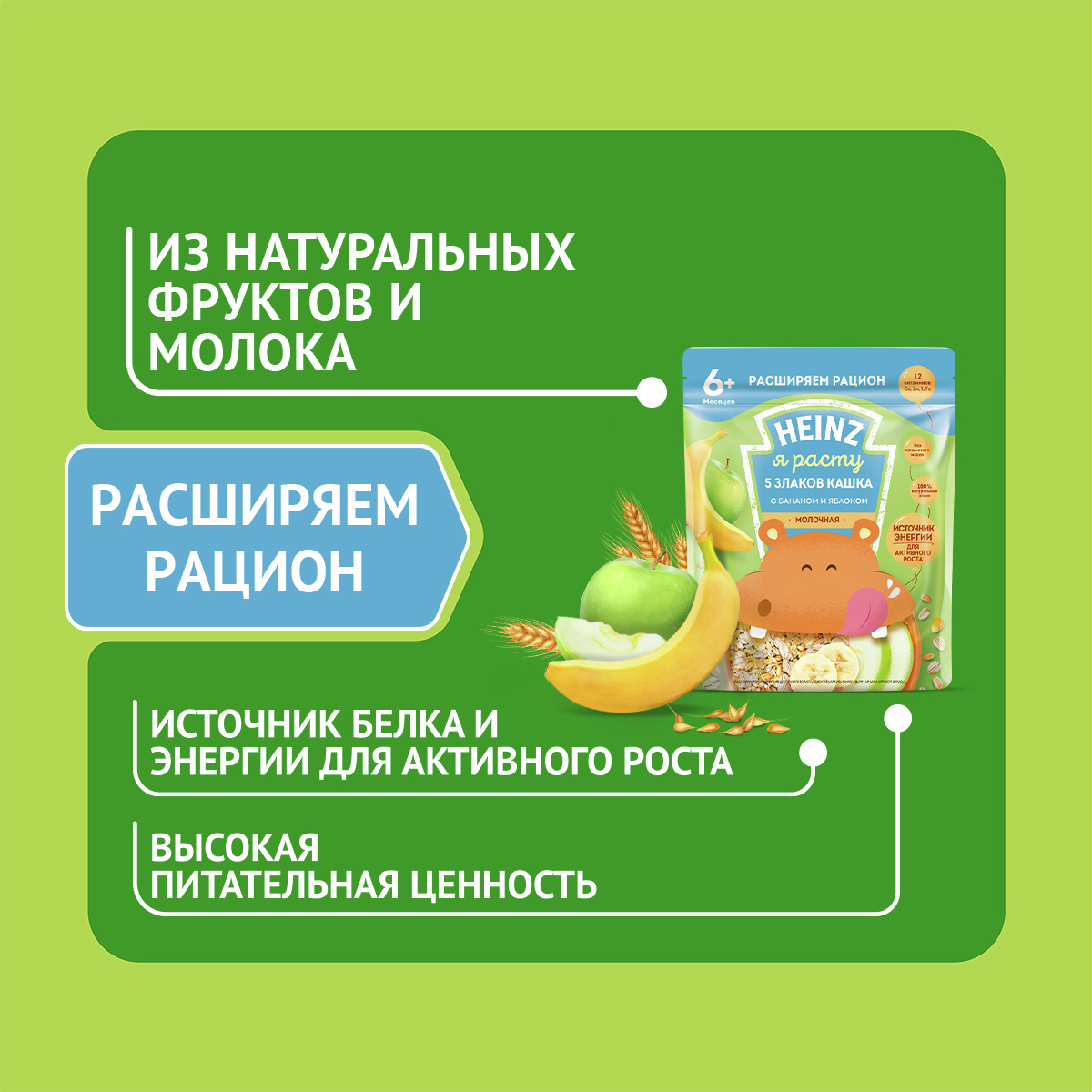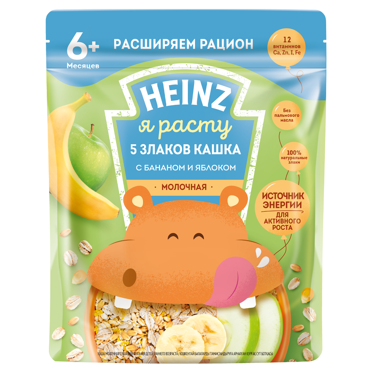 Каша молочная детская Heinz 5 злаков Банан и яблоко с 6 месяцев, 200г
