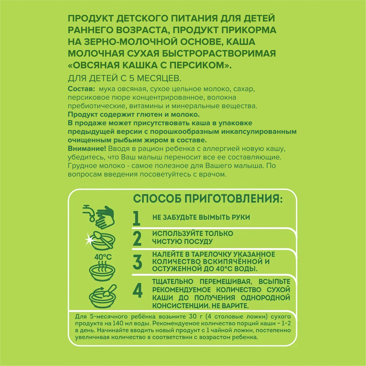 Фруктовые овсяные каши Heinz с персиком разработаны специально для прикорма малышей с 5 месяцев. Сочетание злаков, фруктов и молока обеспечит ребенка необходимыми питательными веществами. Детские овсяные каши содержат белки для нормального развития мышц, витамины группы B, а также железо, кальций цинк и другие минералы. Линейка молочных каш имеет высокую питательную ценность и надолго заряжает энергией. Детские каши Heinz имеют сбалансированную формулу.