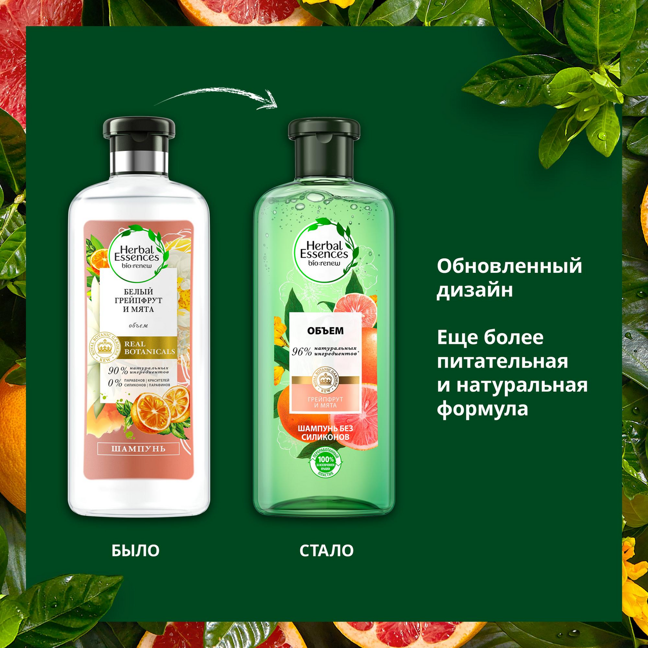Веганский шампунь Herbal Essences (Хербал Эсенсес) Объем из коллекции Белый грейпфрут и Мята подходит для тонких, лишенных объема волос. Шампунь с активным антиоксидантом бережно очищает волосы, наполняя их чарующими ароматами грейпфрута и мяты и придавая им объем без утяжеления. В результате волосы становятся более живыми, мягкими и блестящими. Шампунь на 96% состоит из натуральных ингредиентов (очищенная вода и натуральные ингредиенты, прошедшие ограниченную обработку) и не содержит силиконов. Его питательная формула обогащена натуральными сертифицированными грейпфрутом и мятой, а также другими растительными экстрактами, качество которых одобрено Королевским Ботаническим Садом Кью в Лондоне.