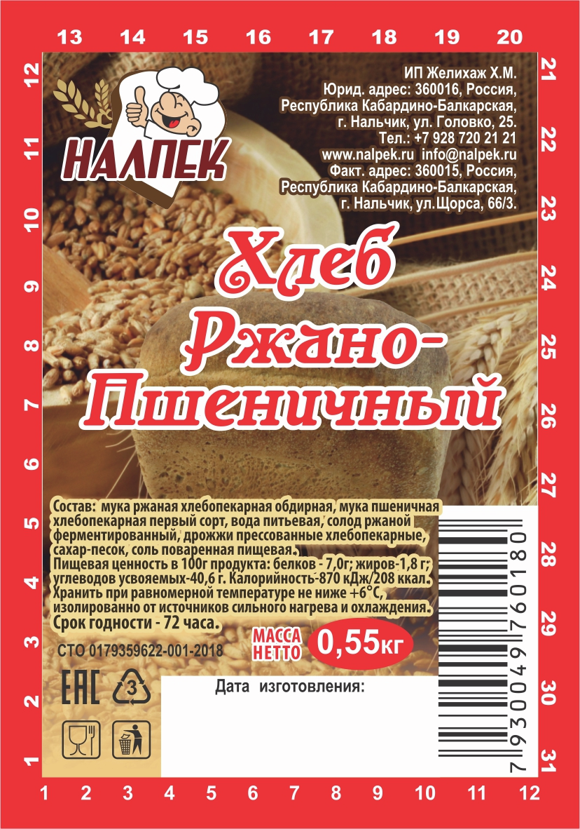 Мука ржаная хлебопекарная обдирная, мука пшеничная хлебопекарная первый сорт, вода питьевая, солод ржаной ферментированный, дрожжи прессованные хлебопекарные, сахар-песок, соль поваренная пищевая.