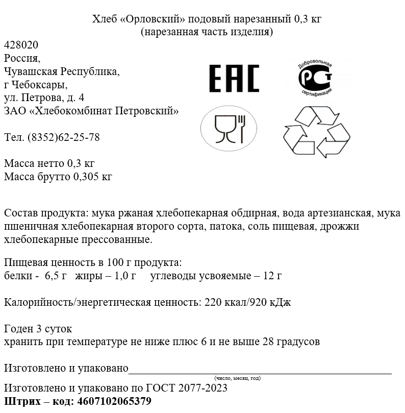 Хлеб Петровский ХК Орловский нарезной, 300г