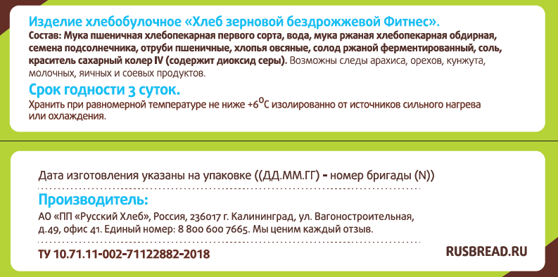 Произведен без использования хлебопекарных дрожжей с добавлением специальным образом обработанных цельных зерен ржи, семян подсолнечника. Темный цвет мякишу придает ржаной солод. Такой состав обогащает организм клетчаткой, витамином Д, минералами и необходимыми аминокислотами. Хлеб Фитнес - источник энергии для людей, ведущих активный образ жизни, придает силы при тяжелых физических нагрузках.