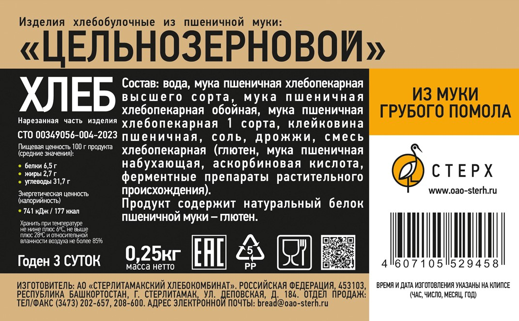 Хлеб Стерх Цельнозерновой нарезка, 250г