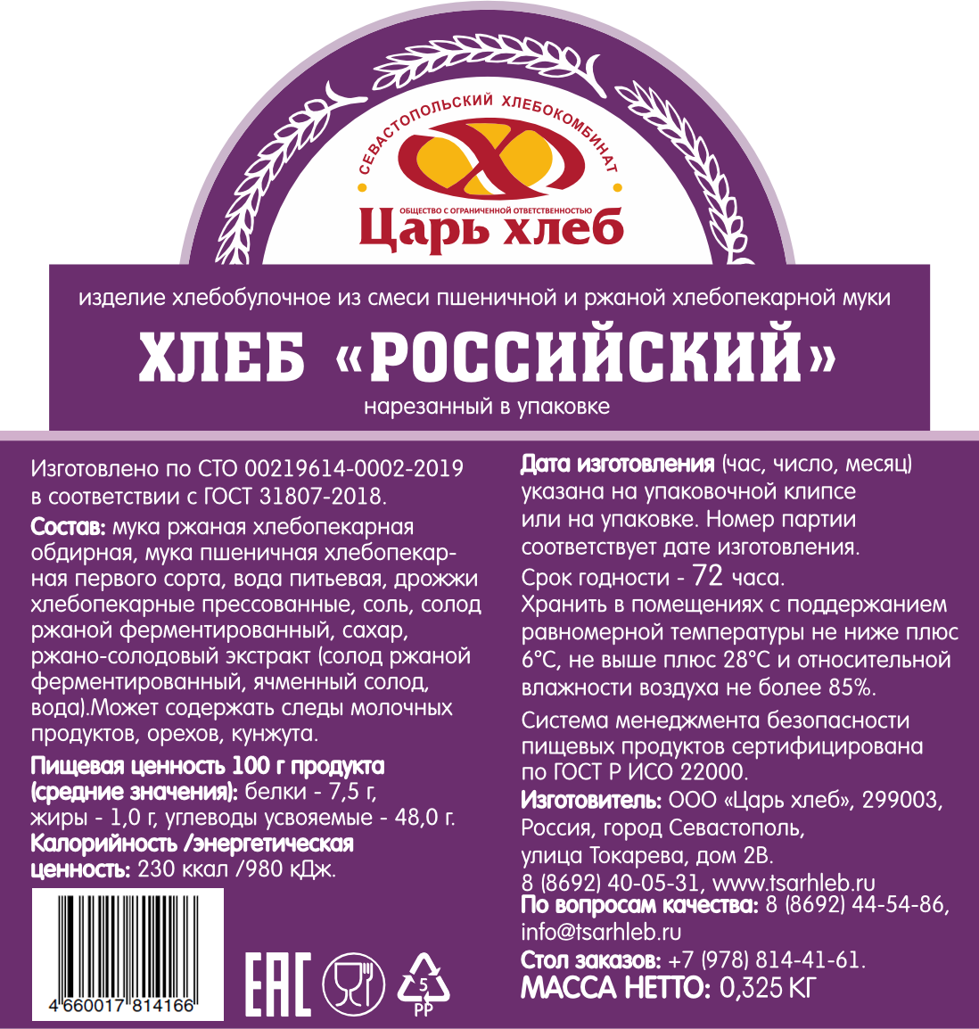 - Бренд ЦАРЬ ХЛЕБ