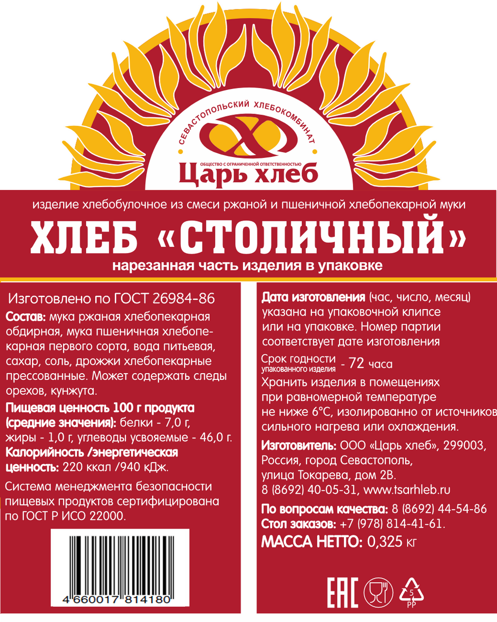 - Бренд ЦАРЬ ХЛЕБ