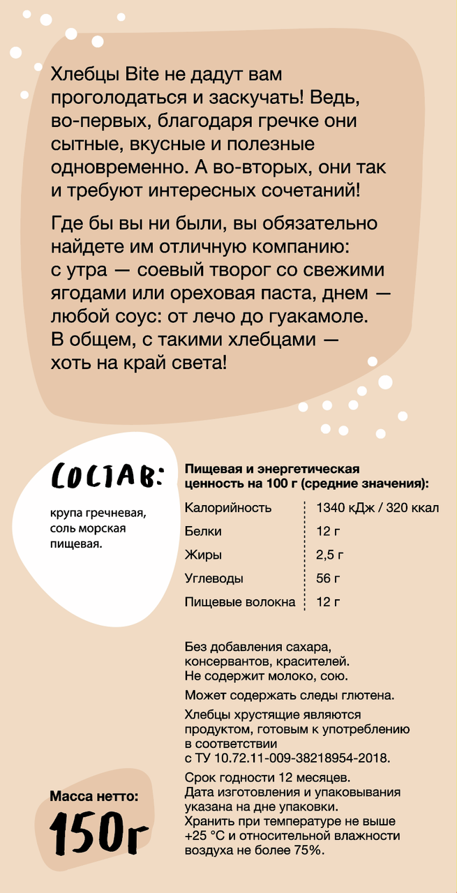 Хлебцы Take a Bite гречневые без глютена, 150г