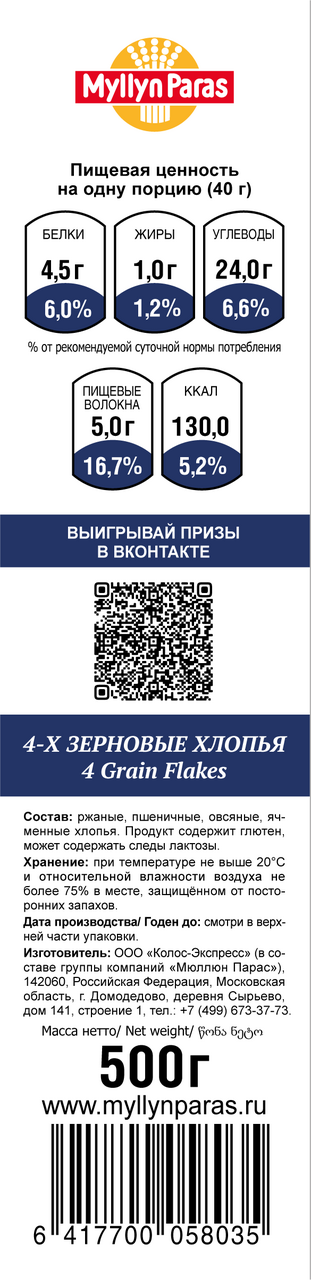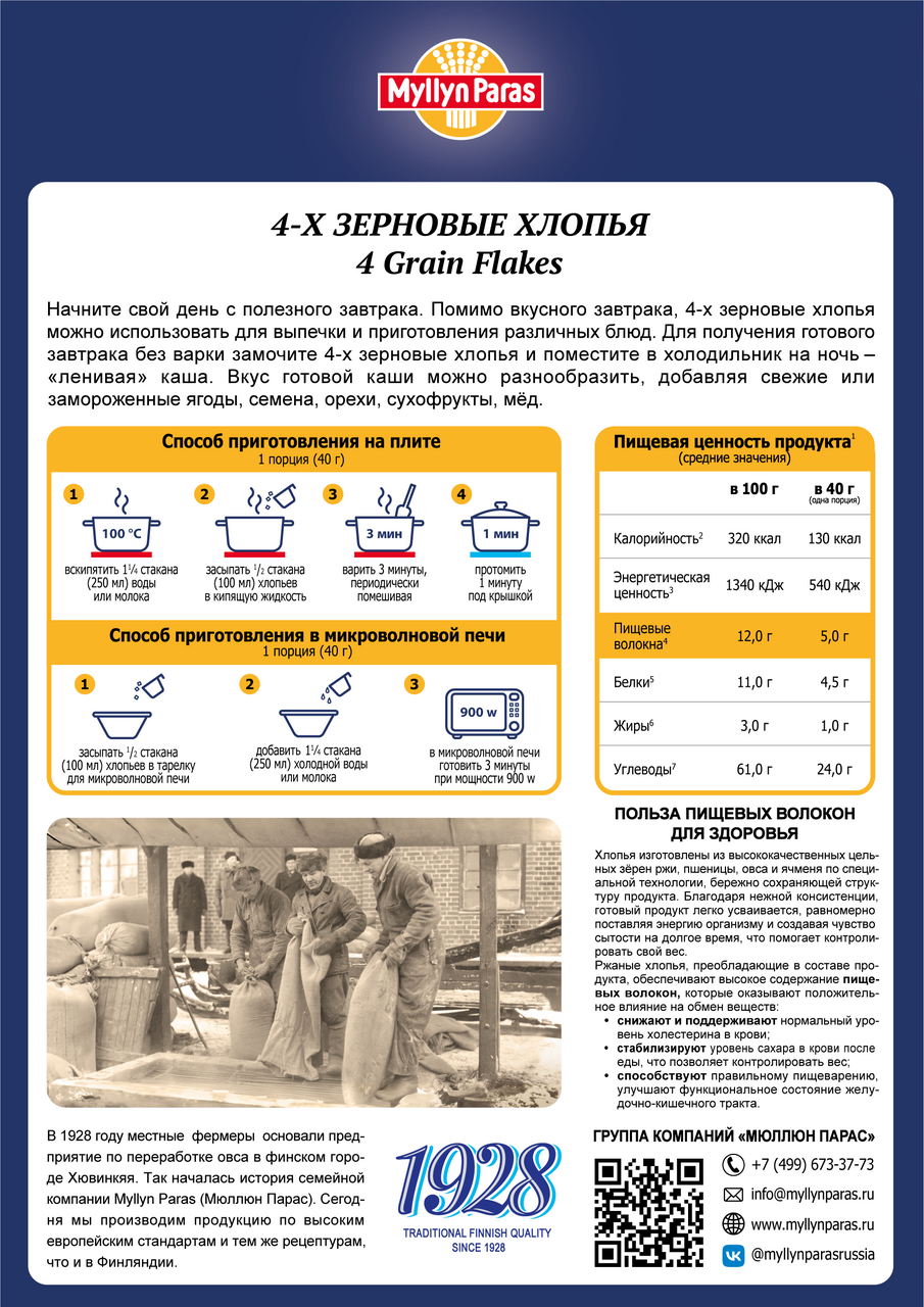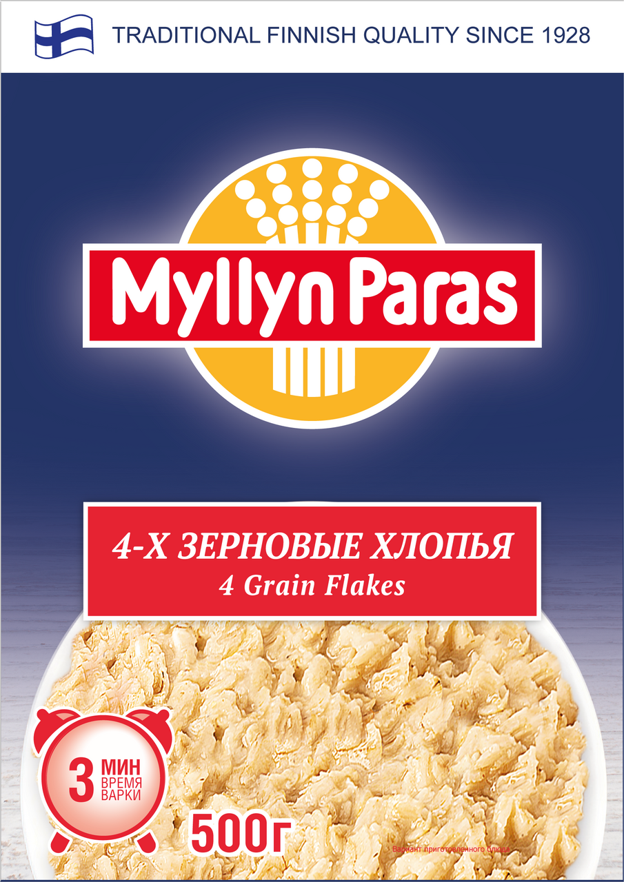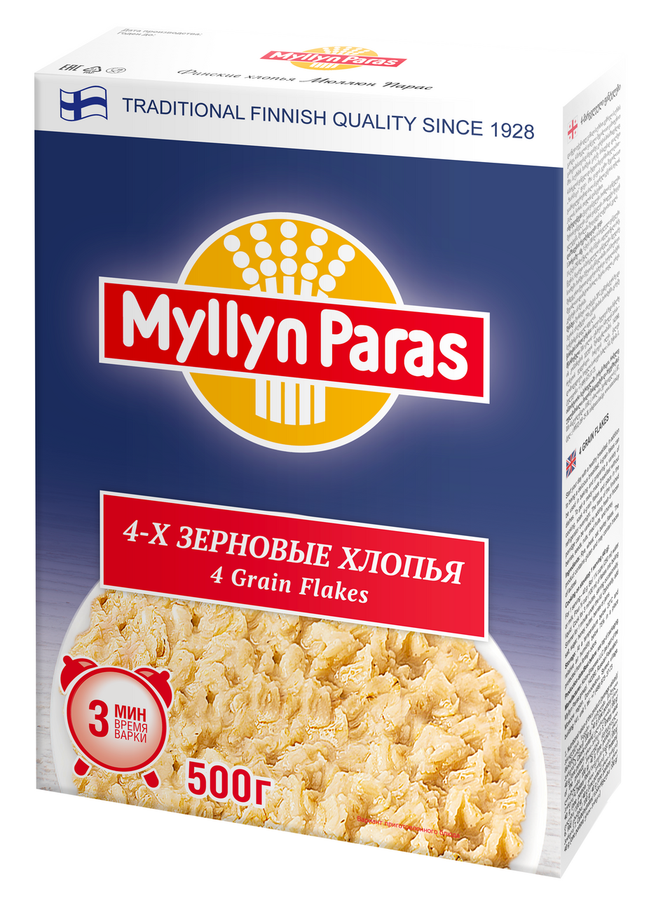 Хлопья Myllyn Paras четырехзерновые, 500г
