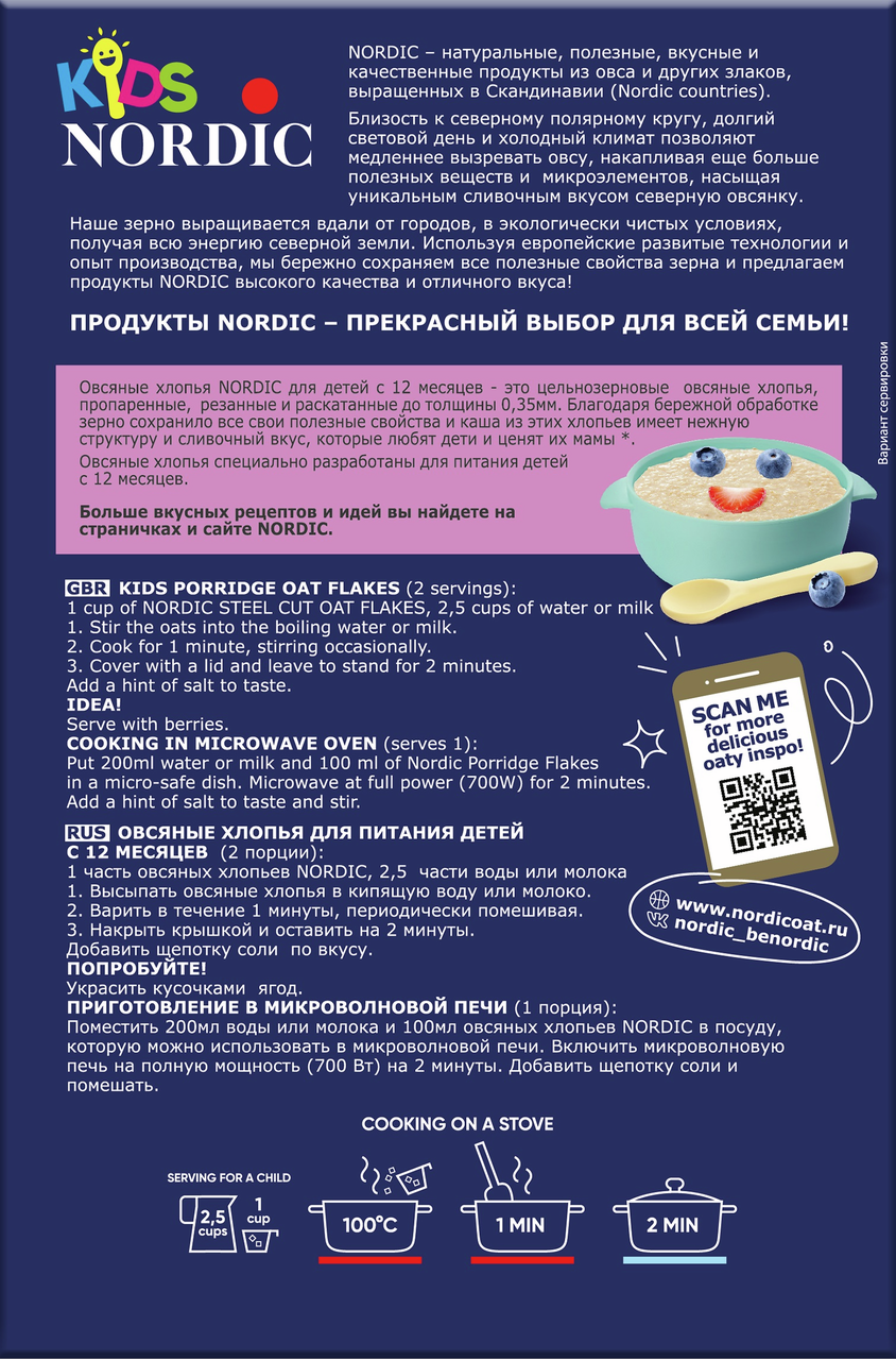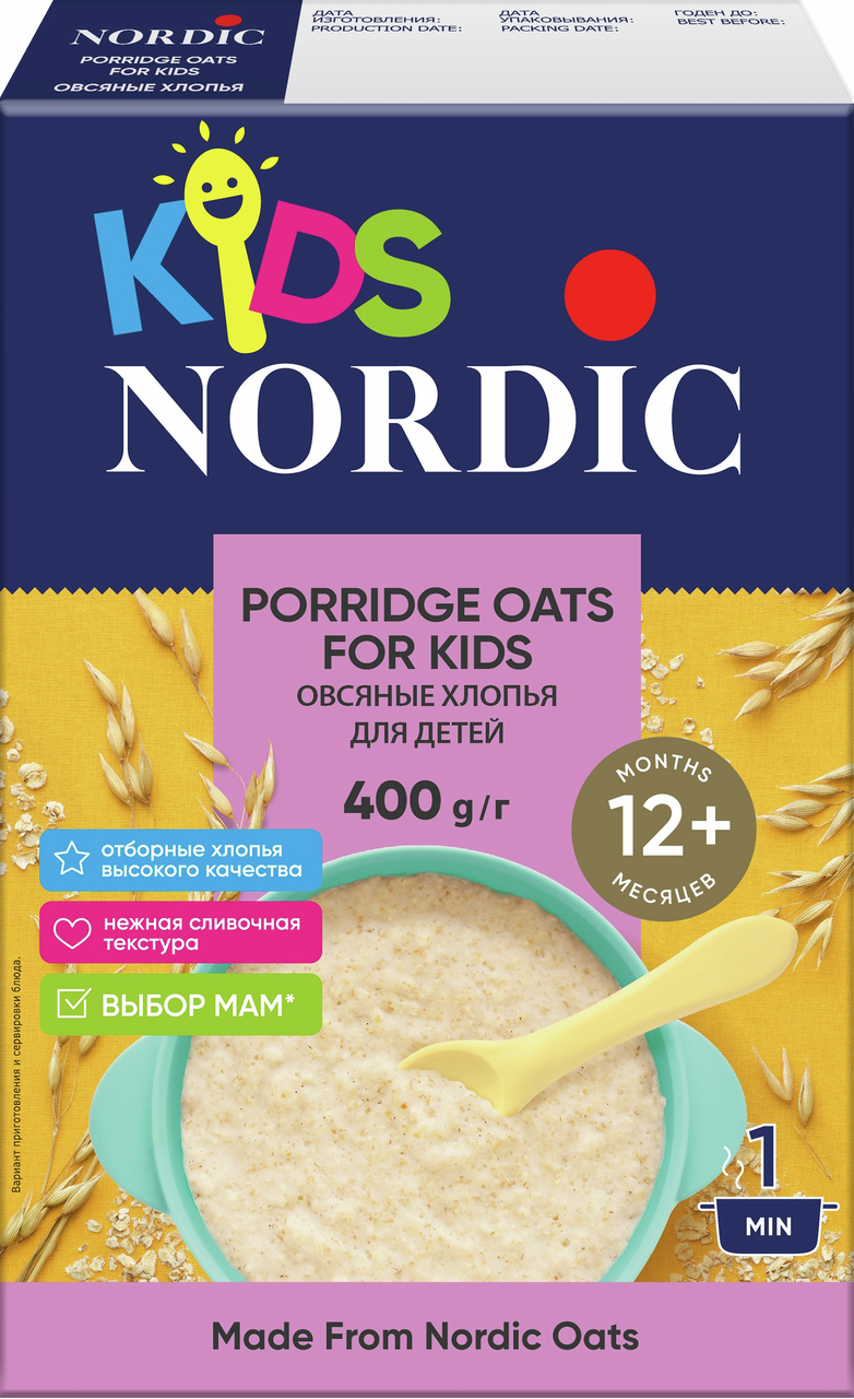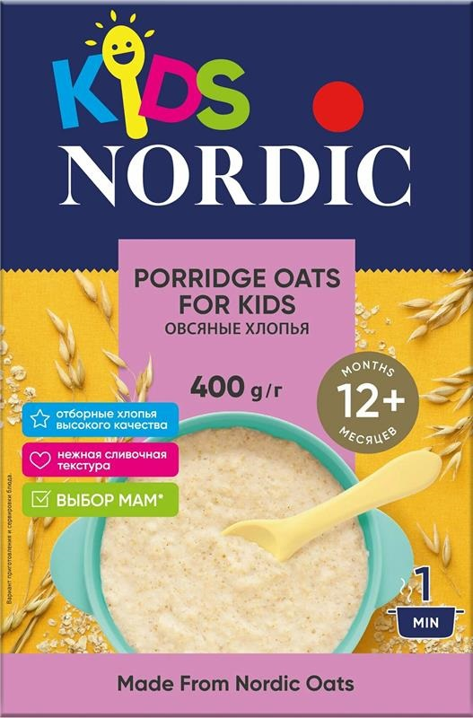 Овсяные хлопья из цельного, специально разработанные для питания детей с 12 месяцев. Калиброванное финское зерно бережно очищают от шелухи, пропаривают под давлением, режут и плющат до толщины 0,35мм. Благодаря такой технологии обработки хлопья сохраняют всю природную пользу зерна, а каша имеет нежную консистенцию и сливочный вкус, которую любят дети и ценят их мамы. Согласно исследованиям, проведенным компанией-производителем, мамы очень высоко оценили вкус и качество нового продукта. Более 82% мам готовы выбрать данный продукт для своего ребенка и доверяют бренду Nordic, так как каждая мама выбирает для своего ребенка самое лучшее и полезное. А Nordic качество и вкус своих продуктов сохраняет на высоком уровне вот уже 30 лет. Специально разработаны для питания детей с 12 месяцев. Произведены из калиброванной финской овсянки. Имеют нежную сливочную структуру 100% цельное зерно. цельнозерновые хлопья пропарены, порезаны и раскатаны до толщины 0,35мм, поэтому каша из них получается особенно нежной, с выразительным сливочным вкусом. Благодаря бережной обработке овсяное зерно сохраняет все полезные свойства.