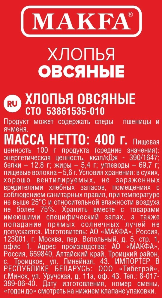 Хлопья овсяные Makfa 400г