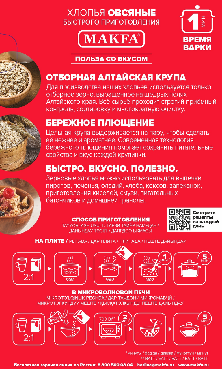 Это отборная алтайская крупа из зерна, выращенного на щедрых полях Алтайского края. Все сырье проходит строгий приемный контроль, сортировку и многократную очистку. Цельная крупа выдерживается на пару, что делает ее нежнее и ароматнее. Современная технология бережного плющения помогает сохранить питательные свойства и вкус каждой крупинки. Такие зерновые хлопья можно использовать для выпечки пирогов, печенья, оладий, хлеба, кексов, запеканок, приготовления йогуртов, киселей, смузи, питательных батончиков и домашней гранолы. Для производства наших хлопьев используется только отборное зерно, выращенное на щедрых полях Алтайского края. Все сырье проходит строгий приемный контроль, сортировку и многократную очистку. Цельная крупа выдерживается на пару, чтобы сделать ее нежнее и ароматнее. Современная технология бережного плющения помогает сохранить питательные свойства и вкус каждой крупинки. Зерновые хлопья можно использовать для выпечки пирогов, печенья, оладий, хлеба, кексов, запеканок, приготовления йогуртов, киселей, смузи, питательных батончиков и домашней гранолы.