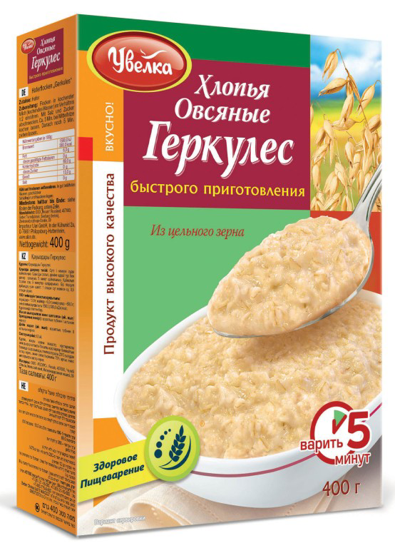Хлопья овсяные УВЕЛКА Геркулес быстрого приготовления, 400г