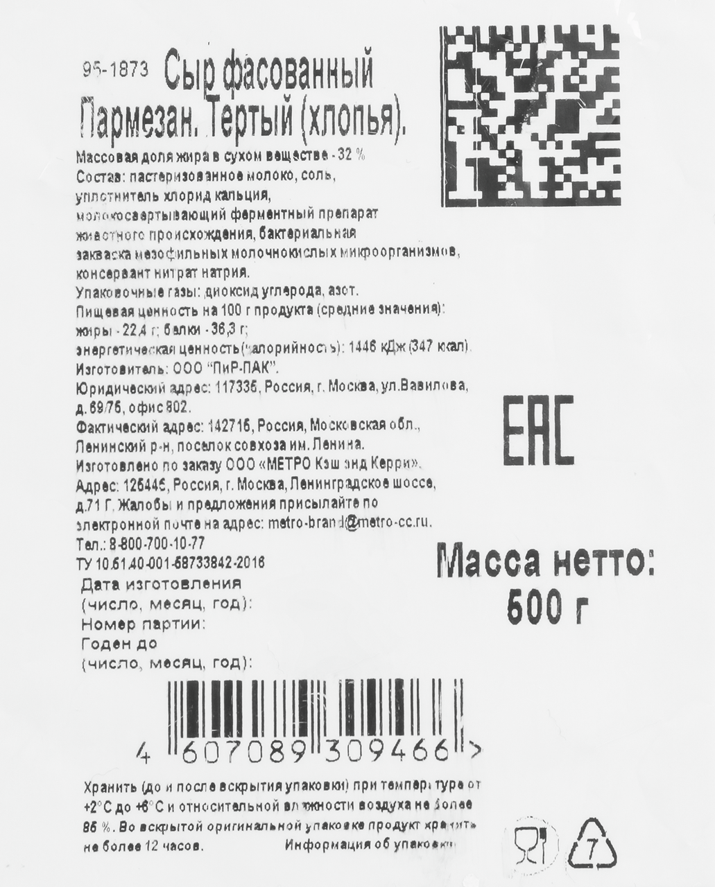 METRO Chef Сыр Пармезан тертый хлопья 32%, 500г