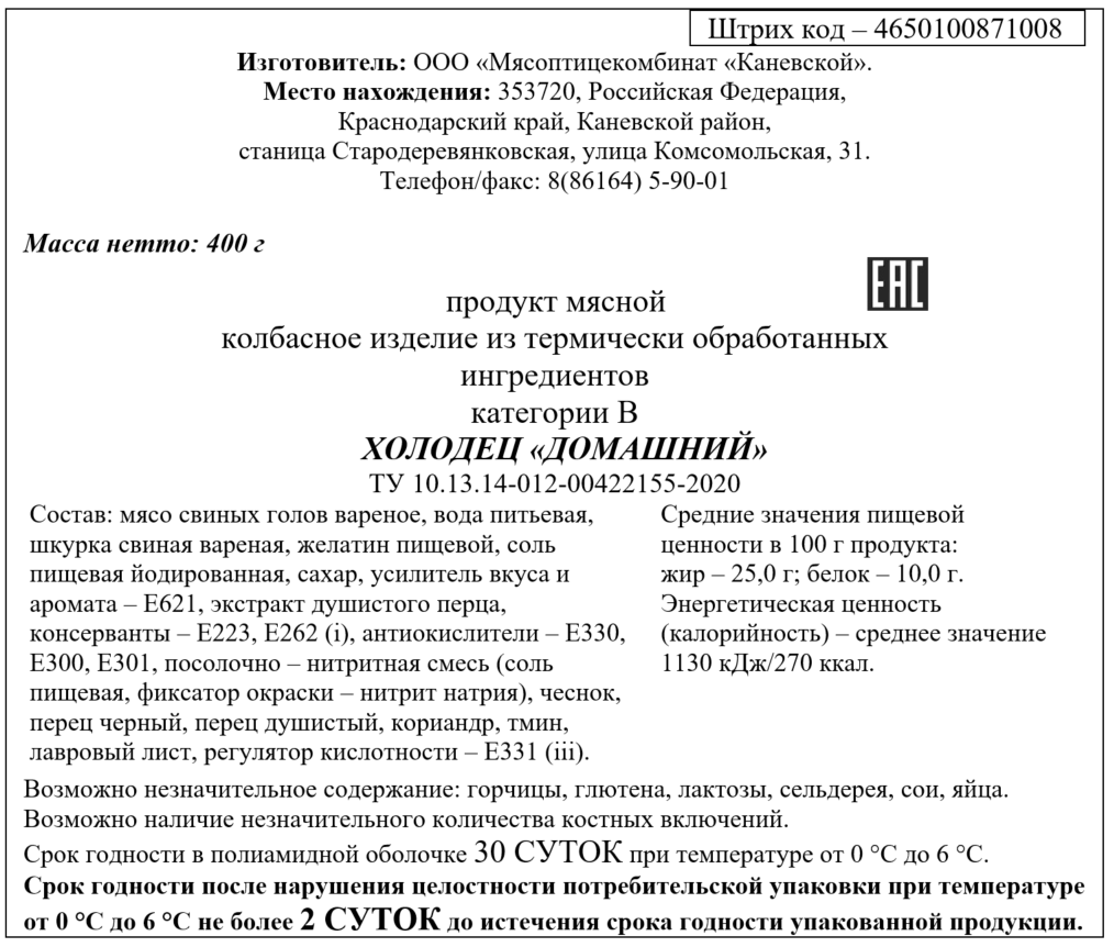 Холодец Каневской Домашний, 400г