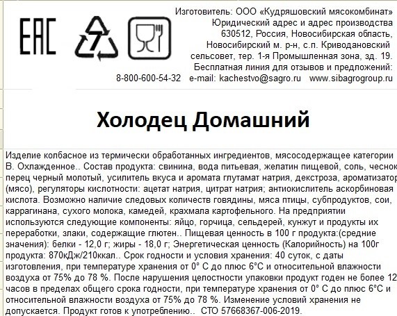 Сытное блюдо из сгустившегося до желеобразной массы от охлаждения мясного бульона с кусочками свинины. В этом продукте много полезных минералов и витаминов: А, С, В9, коллаген, жирные полиненасыщенные кислоты, калий, глицин и другие. Употребляют как самостоятельное блюдо на каждый день и на праздничный стол.