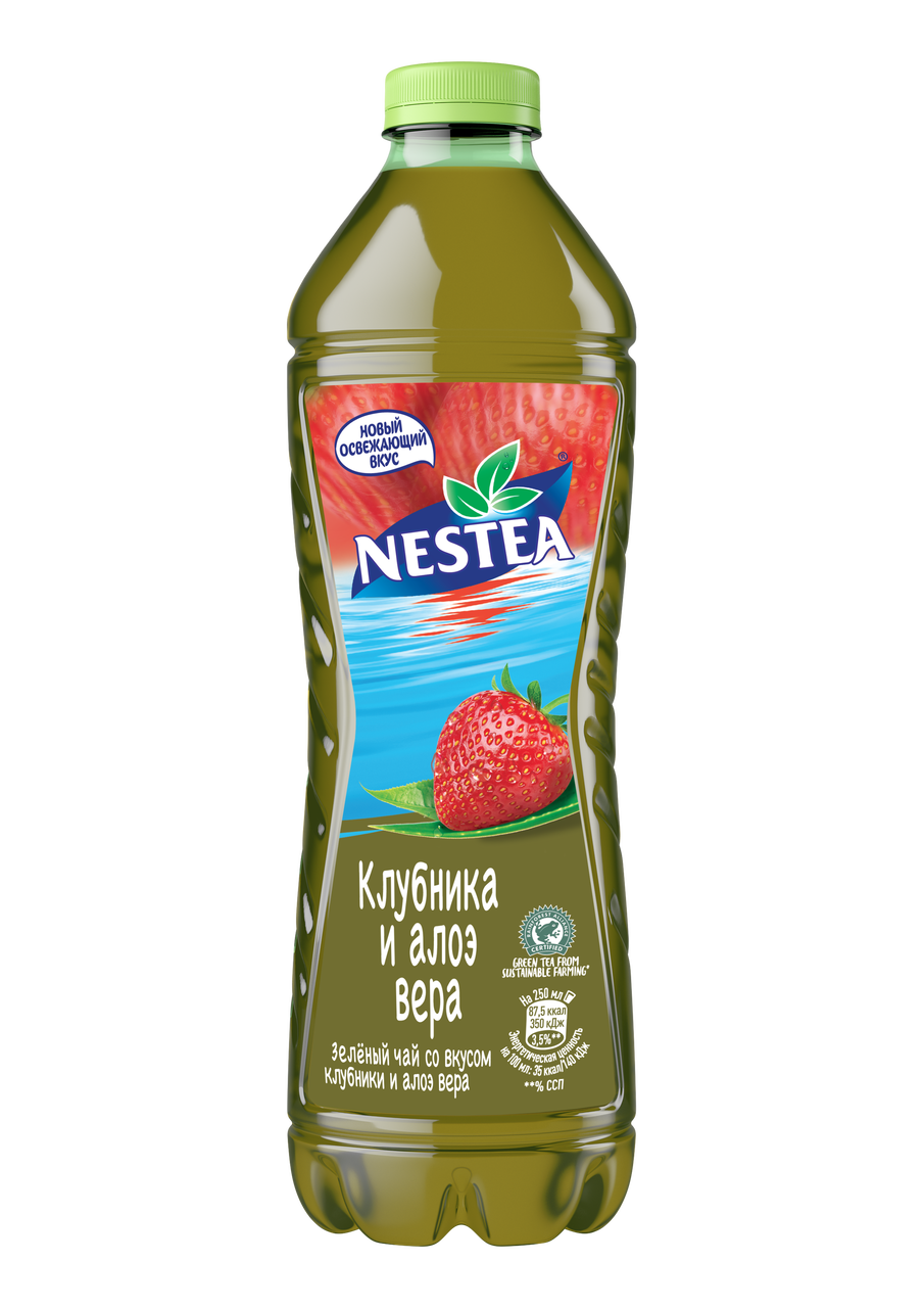 Холодный чай Nestea зеленый со вкусом клубники и алоэ вера производится посредством выпаривания воды из чайных листьев с последующим добавлением воды, сахара и натурального сока.Отличается насыщенным вкусом с вяжущими нотками и легкой кислинкой. Приятно освежит в жаркий полдень, подарит силы и энергию.