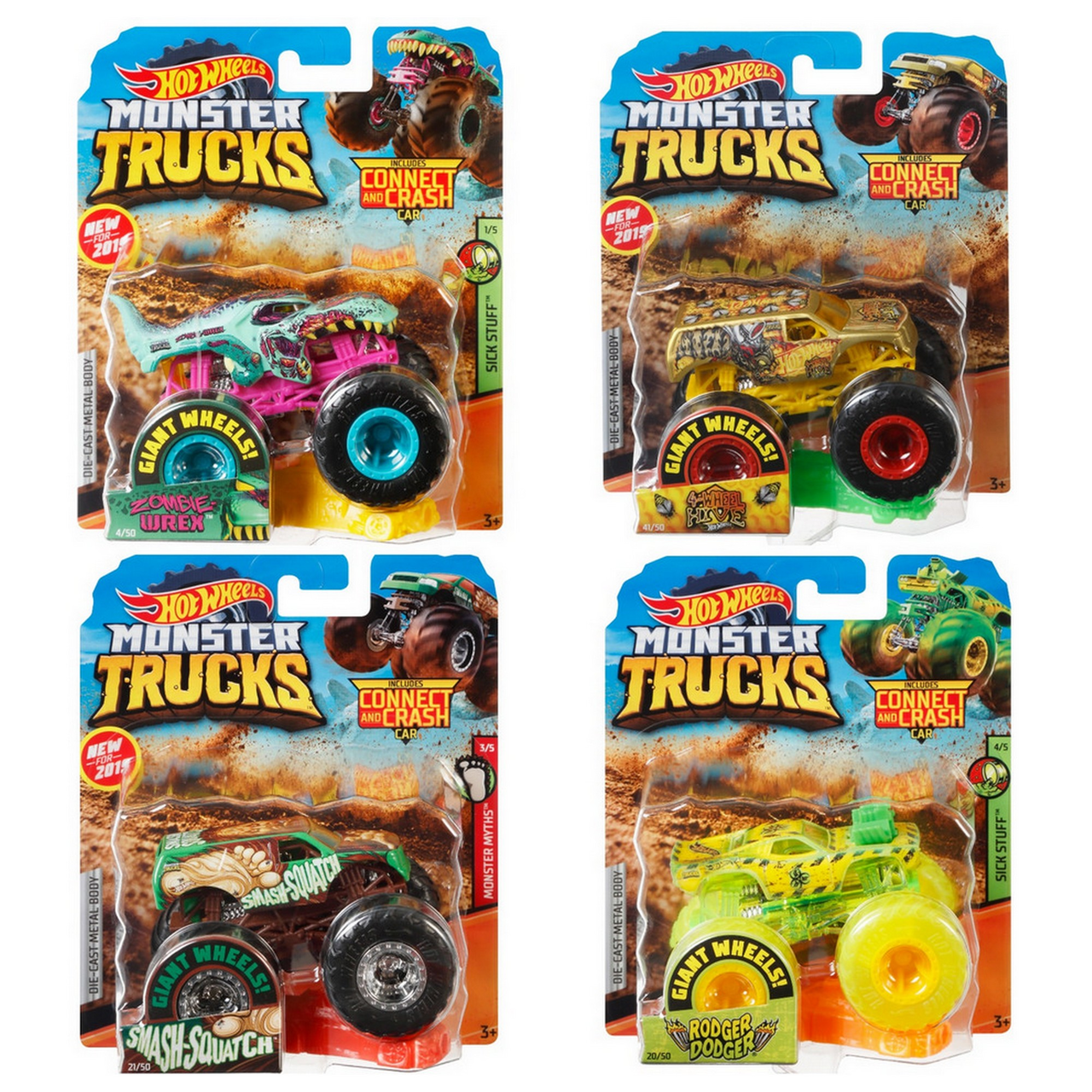 Машинка Hot Wheels Монстр-трак 1:64 в ассортименте FYJ44 Ваш мальчик будет в восторге от новых машинок, созданных по мотивам известного фильма Монстр-траки. Эти автомобили способны раздавить всех на своем пути благодаря гигантским колесам. У каждого трака свой вид главной атаки при нападении и свои особенности. У каждого монстр-трака предусмотрено плавное ускорение. Дополнительно в комплект каждой машинки входит подарочное коллекционное колесо с именем трака или дополнительная сминаемая машинка. Дополнительные машинки соединяются друг с другом. Из них можно составить препятствия и различные фигуры. Соберите все машинки коллекции и устраивайте соревнования лицом к лицу (каждая машинка продается отдельно).HOT WHEELS и связанные товарные знаки, и фирменный стиль принадлежат Mattel.