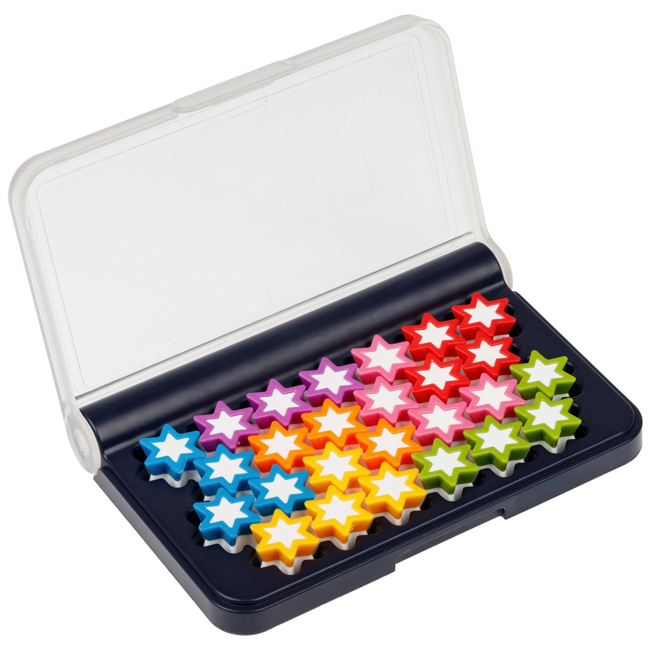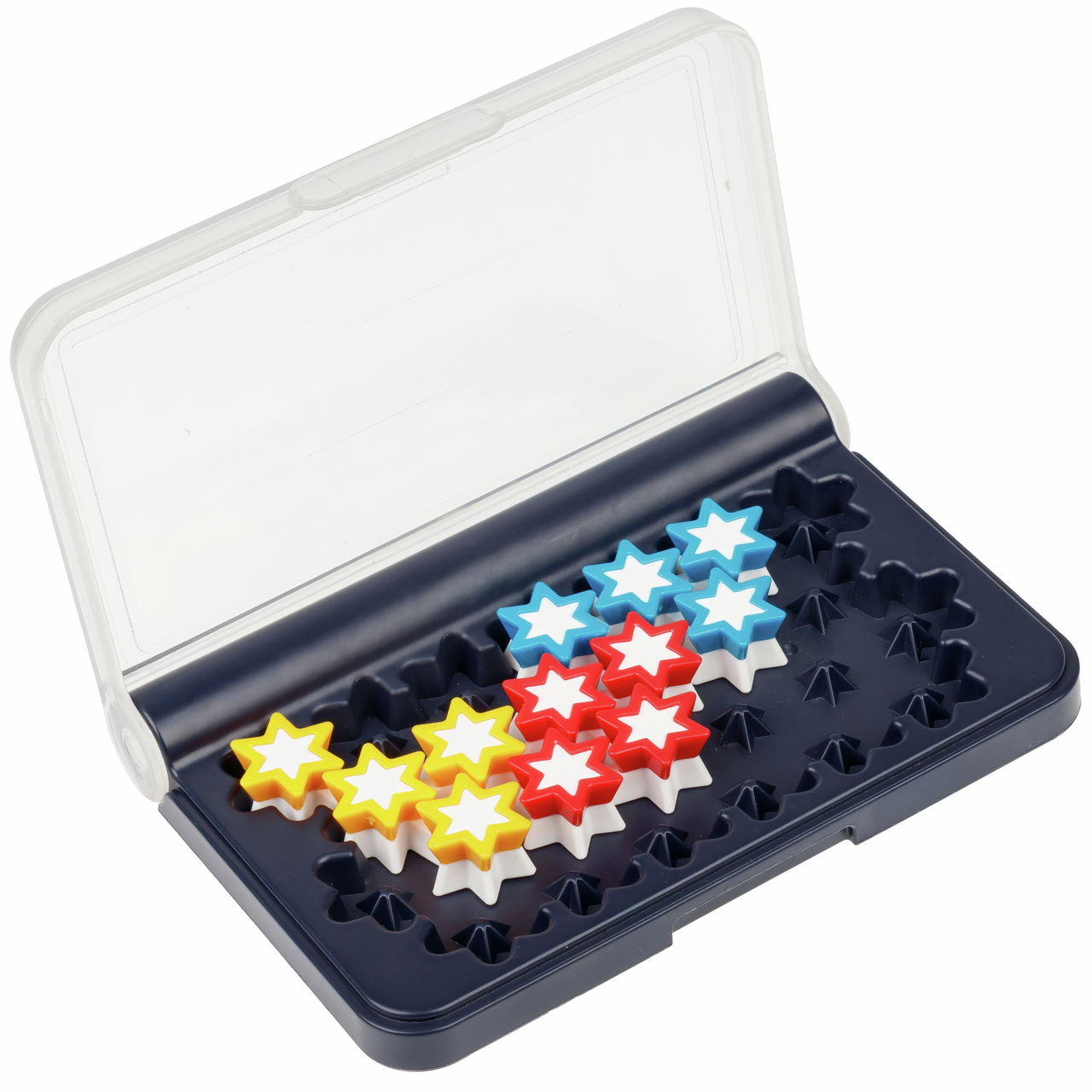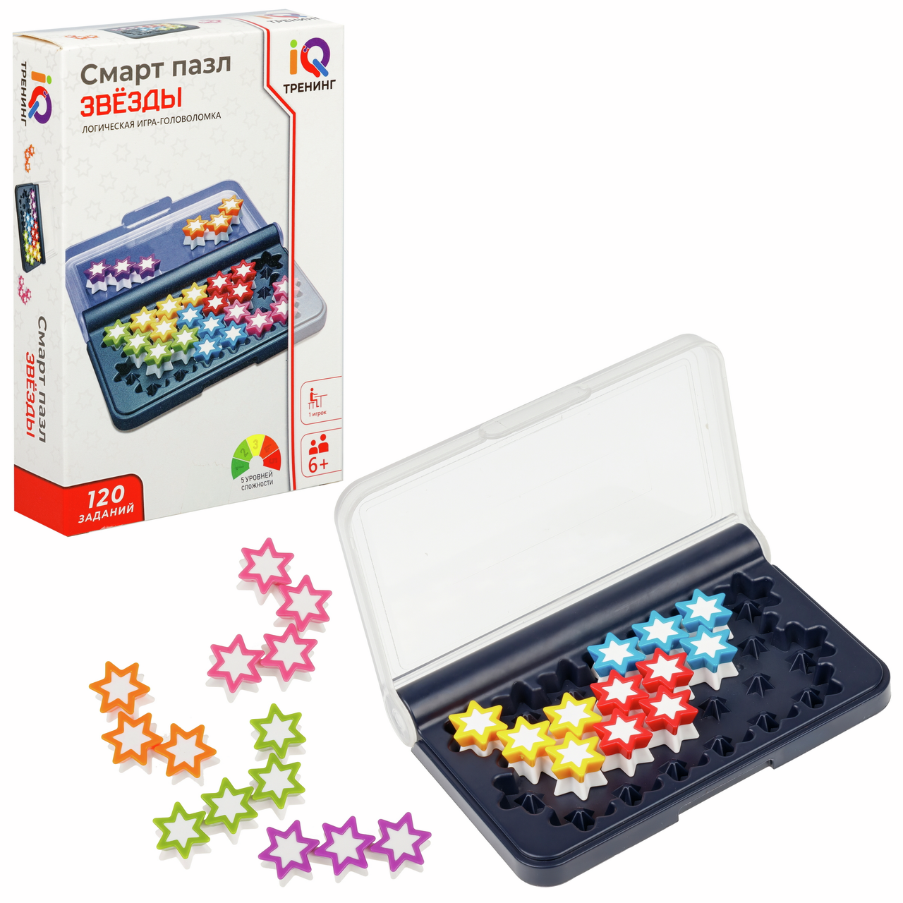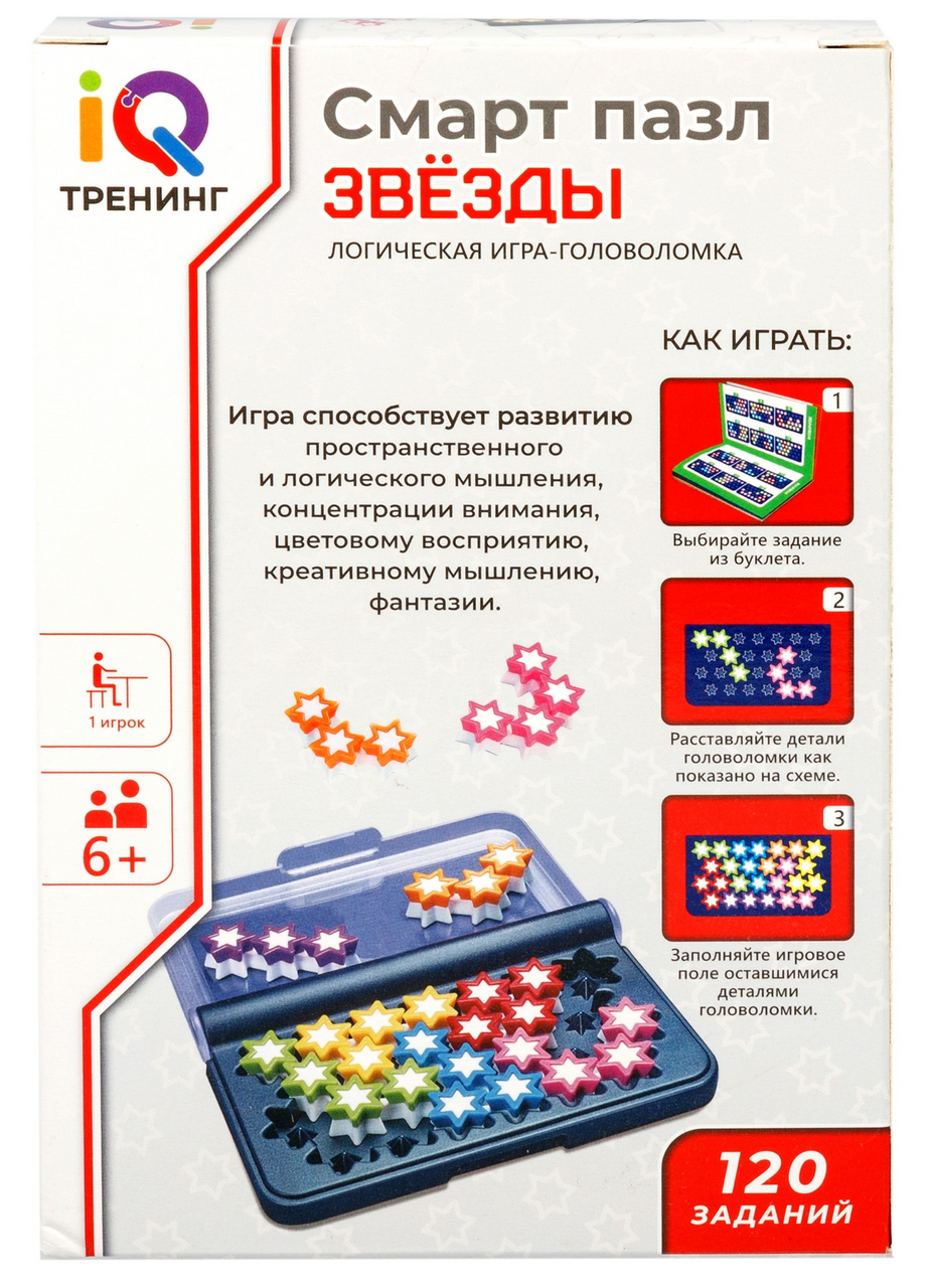 Iq тренинг Смарт пазл Звёзды от 1Toy. Головоломка со звездами взрослых и детей старше 6 лет. В игре 120 заданий, в которых вам предстоит разместить звезды на поле по схеме. Это тренажер для ума в компактной форме, который всегда можно взять с собой в дорогу.