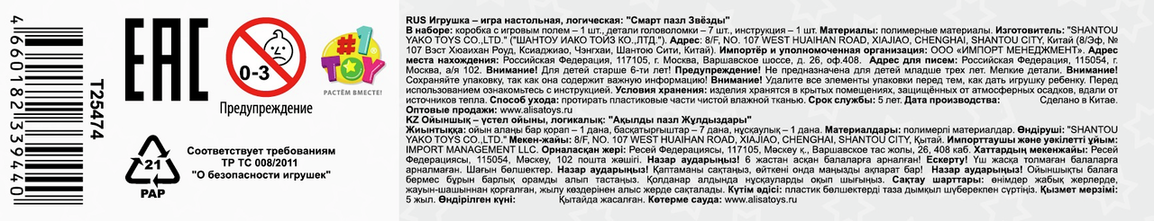 Игра настольная 1Toy Смарт пазл Звезды логическая