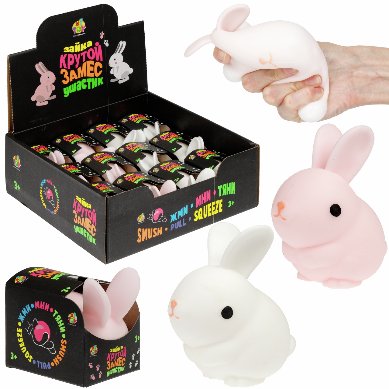 Крутой замес Зайка ушастик от 1Toy - эластичная антистресс-игрушка для взрослых и детей, выполненная из безопасного пластичного полимерного материала. Легко помещается в ладони и обеспечивает приятные тактильные ощущения. Помогает снять напряжение и расслабиться. Способствует развитию сенсорных навыков, мелкой моторики, координации и силы пальцев. Размер 7*5 см. Подходит для детей старше 3-х лет. Игрушку можно и нужно сжимать, растягивать и мять.