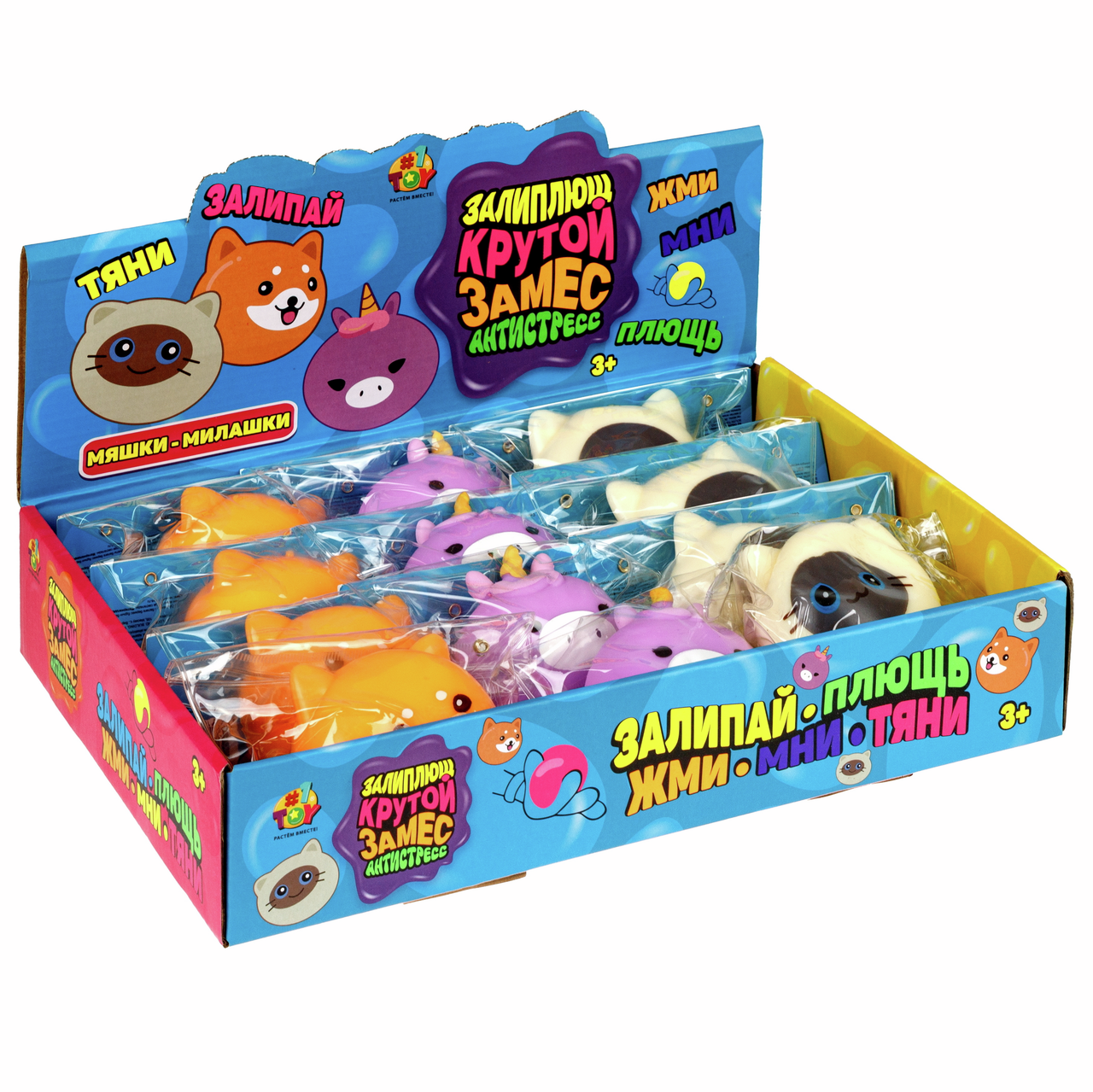 Встречайте! Залиплющ Крутой замес от 1Toy! Залипай, плющь, жми, тяни - находи свой способ отдыха! Добро пожаловать в мир мимимишности! Котик, корги или единорог - выберите своего фаворита среди Мяшек-милашек. Каждый персонаж создан для удовольствия от сжатия, плющения и прилипаний. Благодаря объемной форме (7х7,5х5,5см) игрушка удобно лежит в руке, а мягкий материал делает её приятной на ощупь. Её можно не только мять, но и бросать - она прилипает к поверхности, добавляя игре азарта. Рекомендуется для детей от 3 лет.