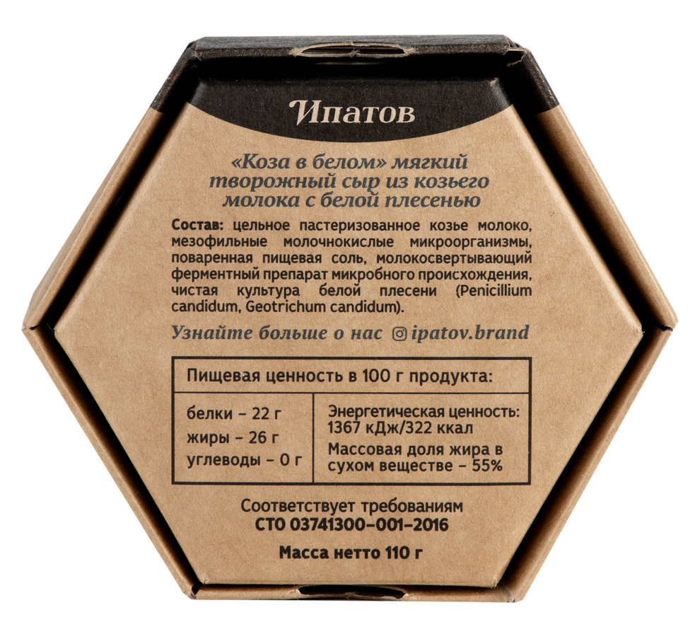 Сыр Ипатов Мастерская сыра Коза в белом с благородной белой плесенью мягкий 50%, 110г