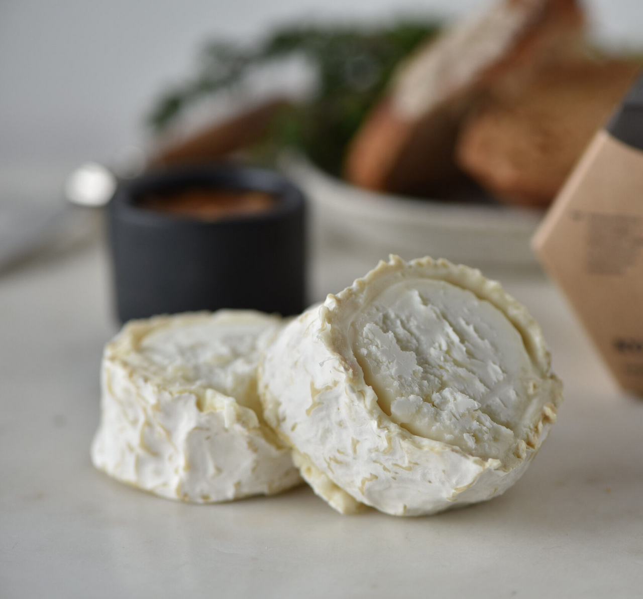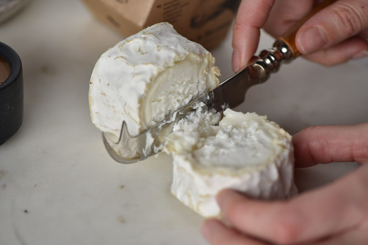 Цельное пастеризованное козье молоко, мезофильные молочнокислые микроорганизмы, поваренная пищевая соль, молокосвертывающий ферментный препарат микробного происхождения, чистая культура белой плесени (Penicillium candidum, Geotrichum candidum).