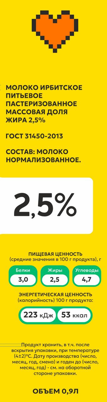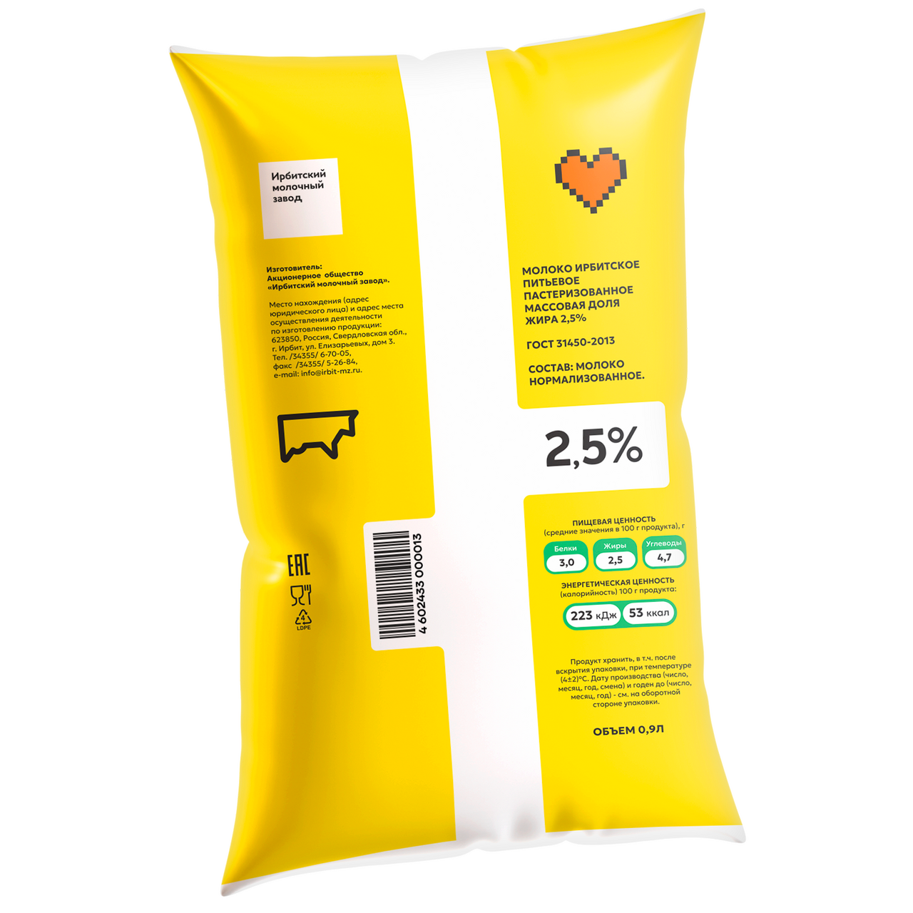 Молоко Ирбитский молочный завод пастеризованное 2.5%, 900мл