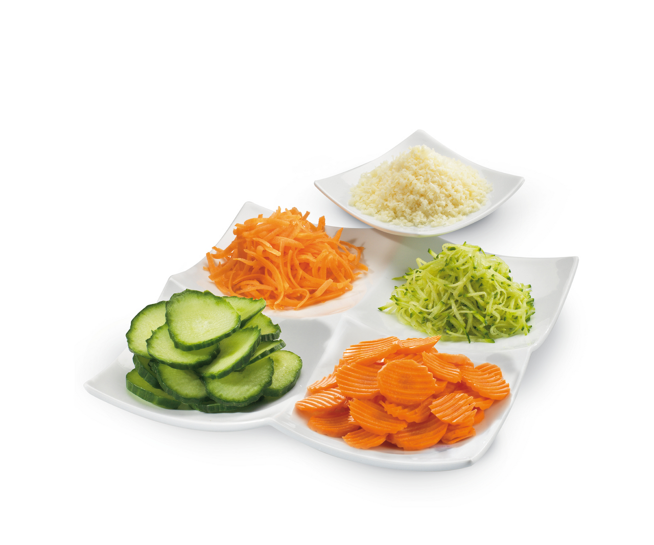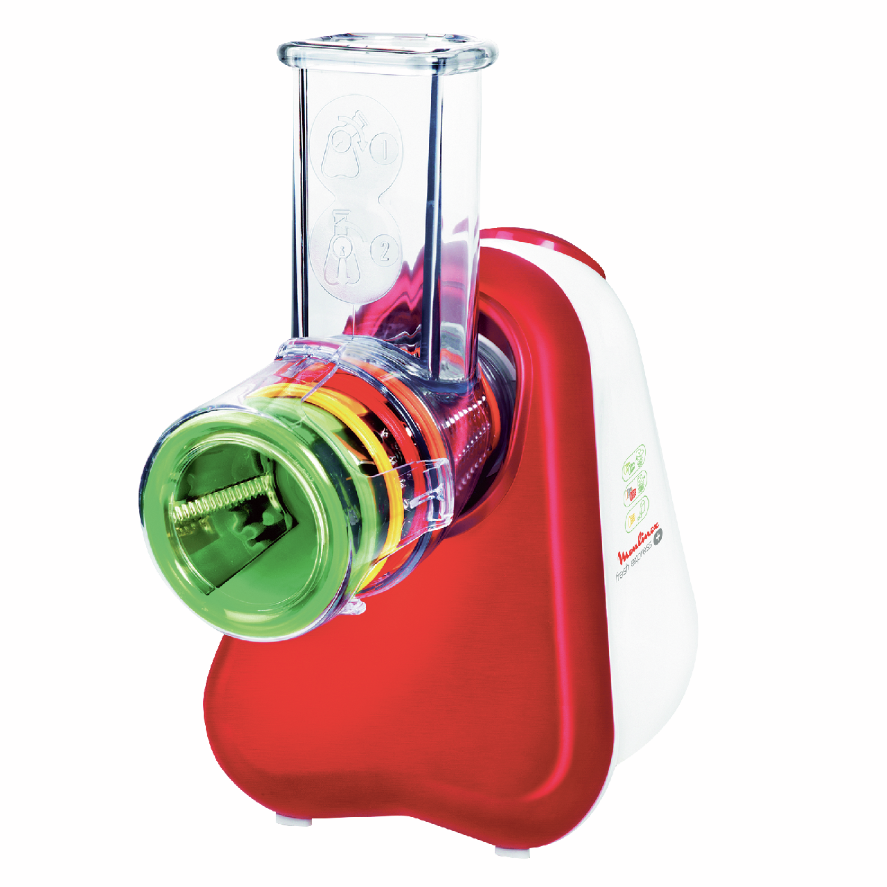 Измельчитель Moulinex DJ755G32 — это универсальная и практичная овощерезка с пятью качественными насадками в виде конусов. В комплекте поставляются аксессуары для мелкой и крупной нарезки, для создания фигурных ломтиков или тонких соломок, шинкования. Модель оснащается функциональной системой подачи ингредиентов прямо в тарелку или миску, а также увеличенным отсеком для загрузки. Съемные насадки комфортно использовать при измельчении продуктов, а также во время ухода за ними. Они помогают быстро нарезать кусочки фруктов, разные сорта сыров, шоколадную плитку. Устройство также используется для приготовления драников, шинкования капусты, сельдерея, моркови для салатов, подготовки овощей для поджарки. Прочный корпус выполнен из металла и пластиковых вставок, стойких к в��здействию механических повреждений, влаги, перепада температур. Благодаря вместительному отсеку для хранения шнура и компактным габаритам измельчитель удобно хранить и переносить с собой. Его современный дизайн гармонично вписывается в интерьер любой кухни.
