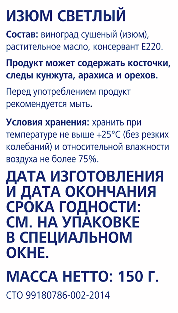 Виноград сушеный, масло растительное (подсолнечное), консервант Е220.