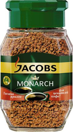 Насыщенный вкус кофе Jacobs Monarch растворимого, 190 г по достоинству оценят любители этого напитка. Он приготовлен из смеси отборных зерен арабики и робусты с применением передовых технологий, благодаря чему сохраняется их аромат. Для приготовления этого напитка требуется совсем немного времени и усилий. Он хорошо сочетается с любыми сладкими хлебобулочными изделиями, шоколадом. Стеклянная банка с герметичной крышкой сохраняет вкусовые свойства кофе.