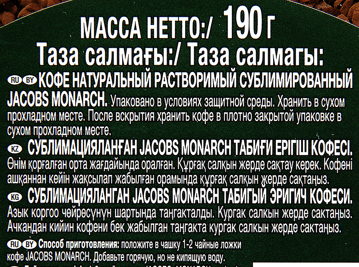 Кофе Jacobs Monarch растворимый сублимированный, 190г